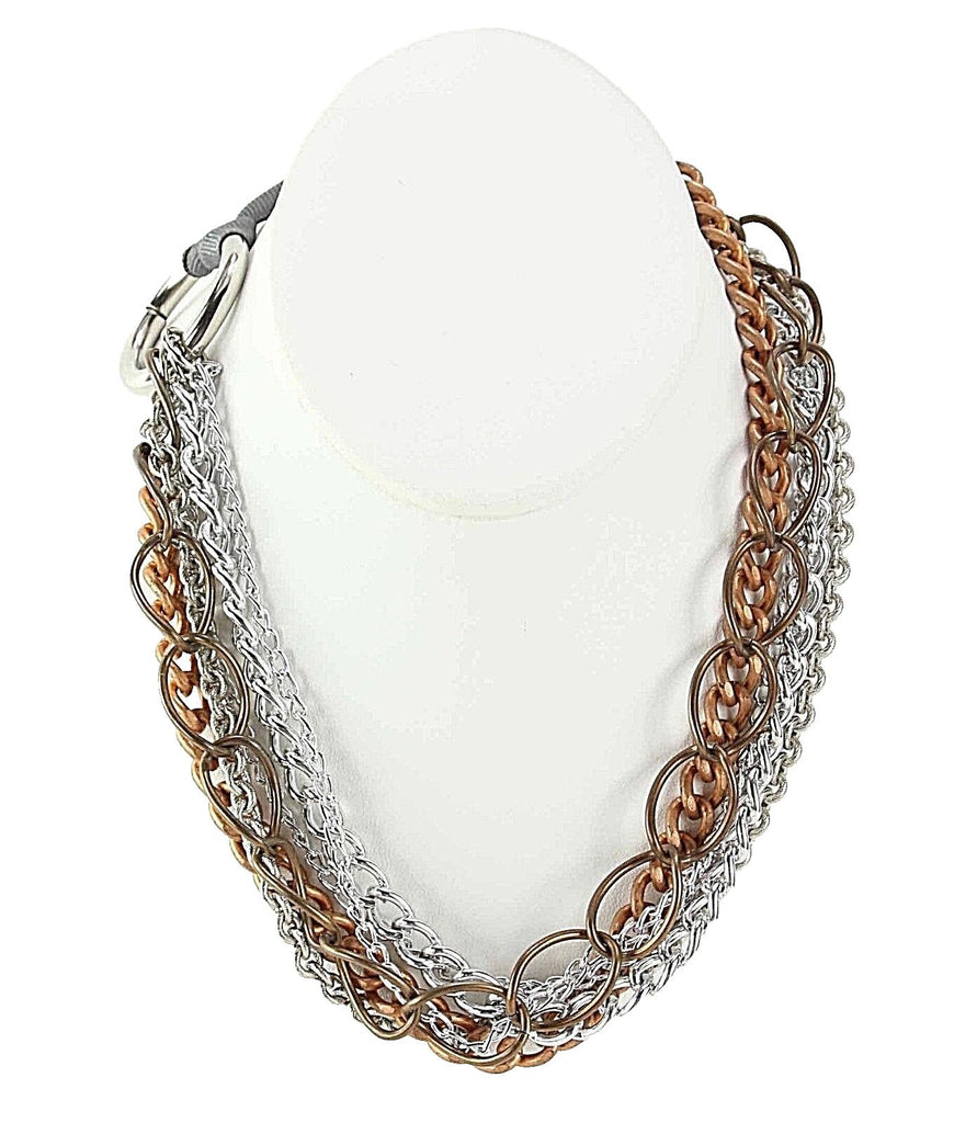 17" Silver Copper 6 Strand Multi Chain Boho Necklace