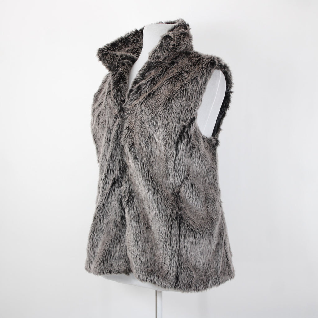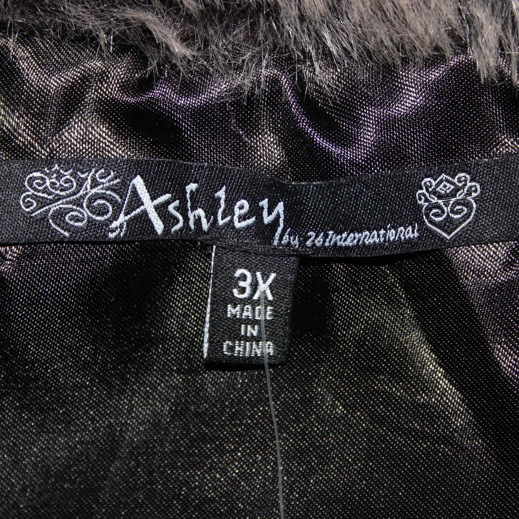 26 International Ashley NEW Sz 3X Gray Black Faux Fur Collared Polyester Vest