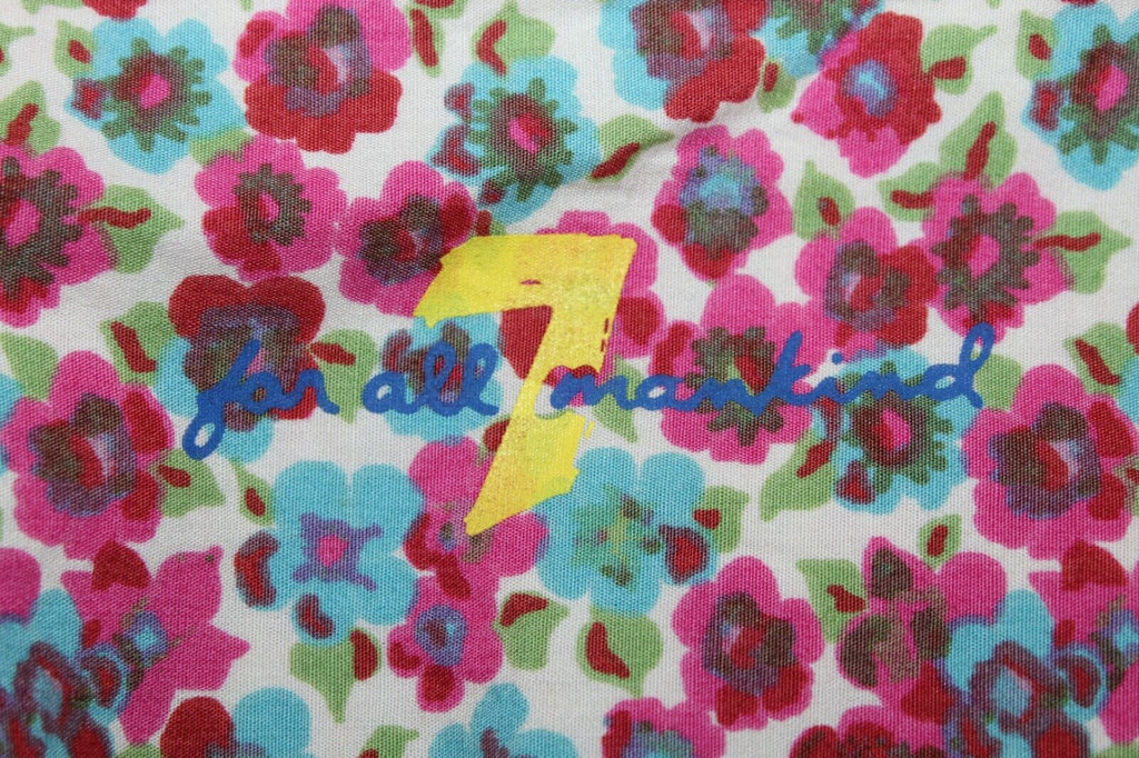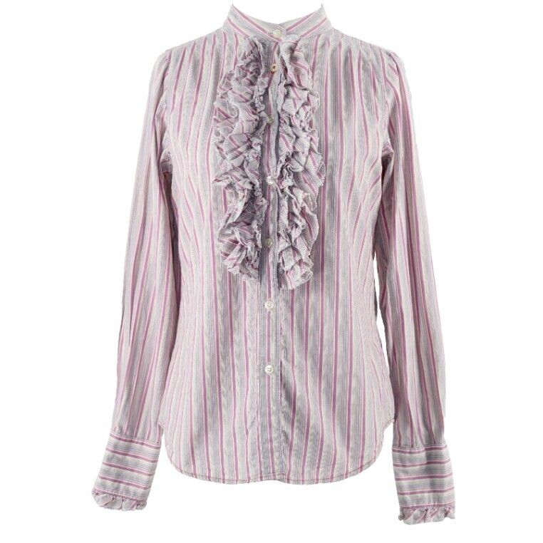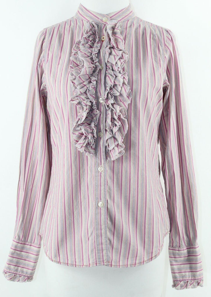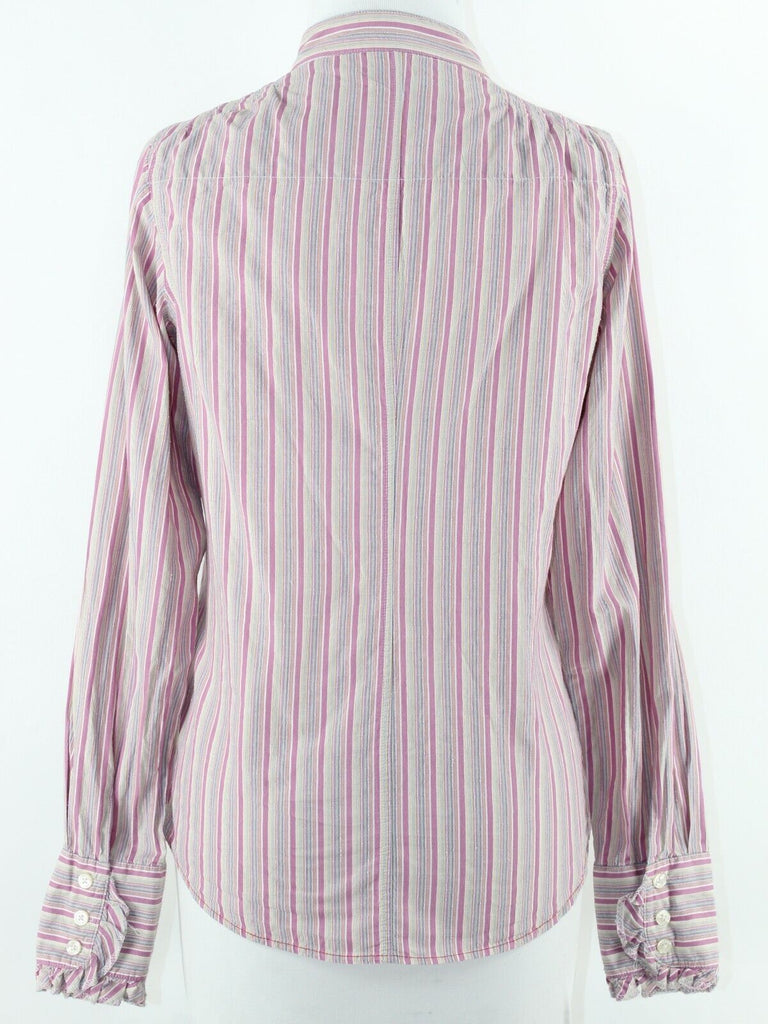 7 For All Mankind Sz M Multi Stripe Ruffle Buttoned Cotton Blend Shirt Top