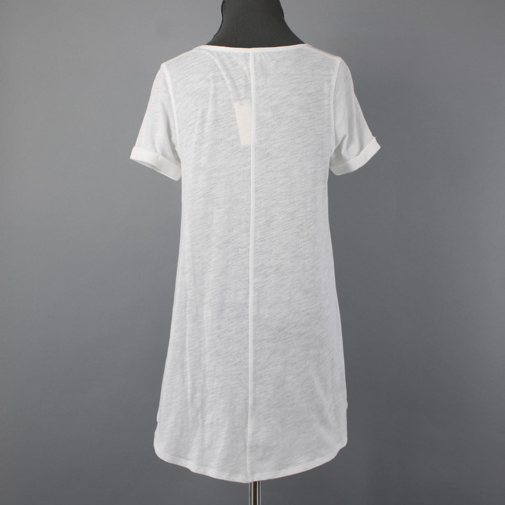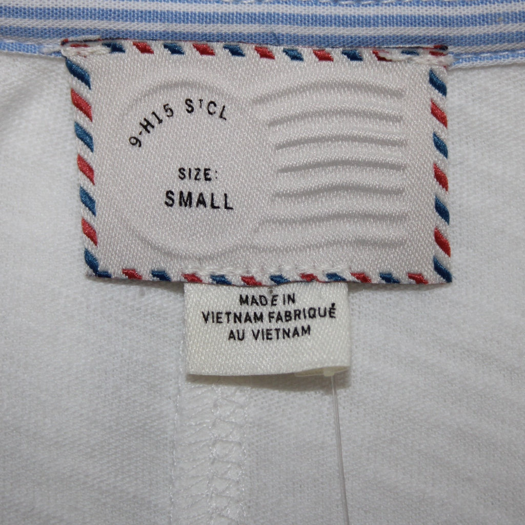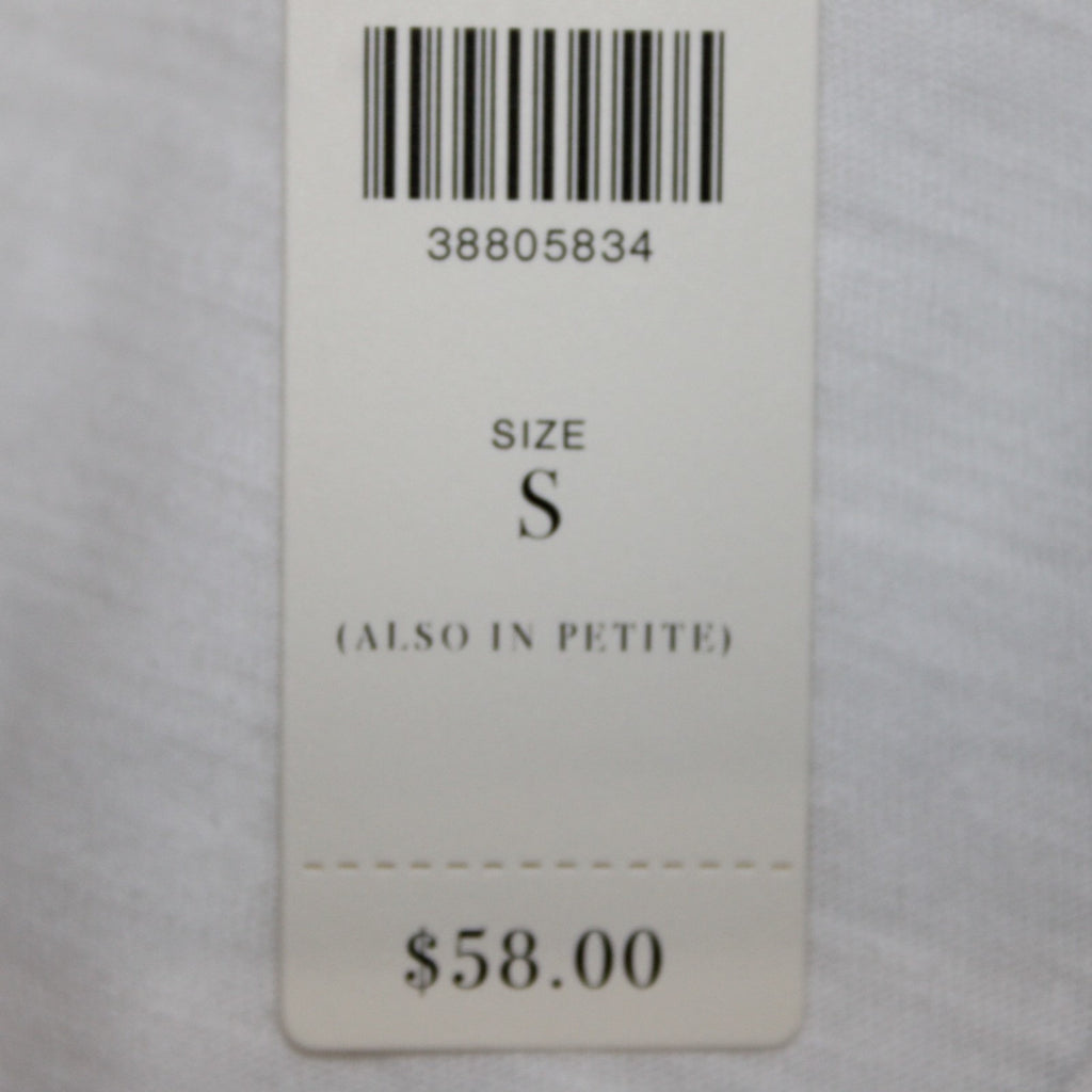 9-h15 STCL NEW $58 Sz S Ivory White Round Neck 1/4 Button Hi Low 100% Cotton Top