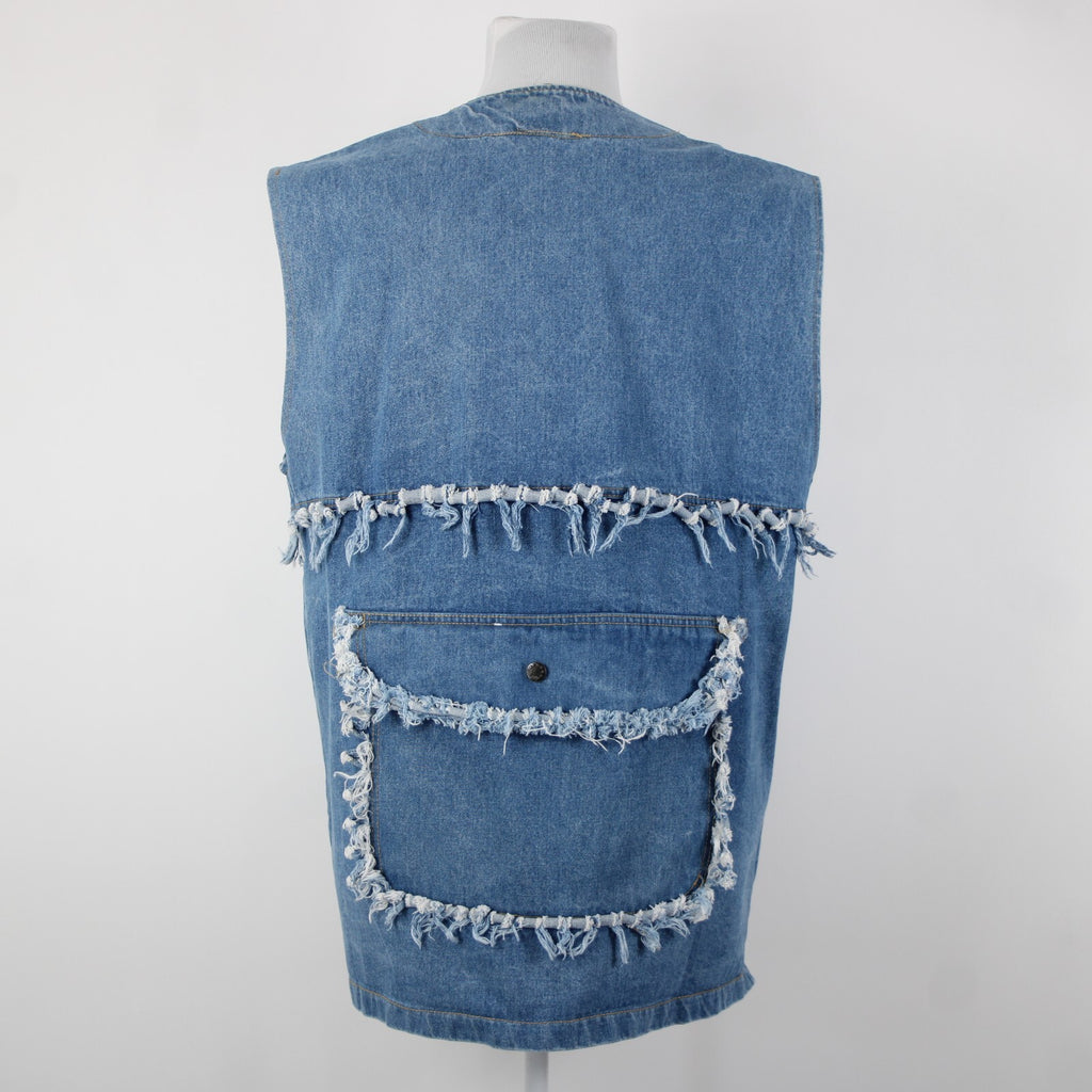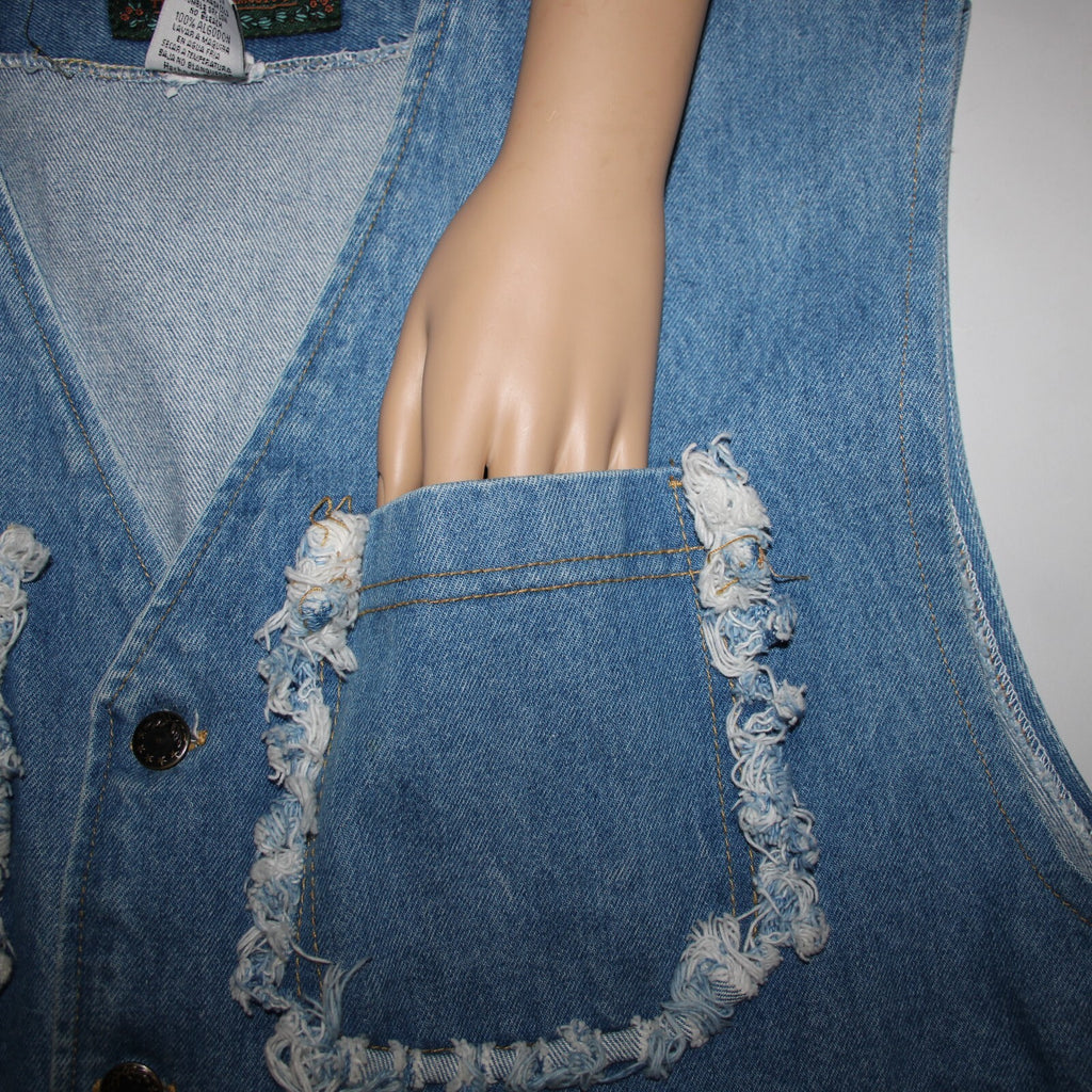 A Class Sz M Blue Denim Distressed Pockets Sleeveless 100% Cotton Vintage Vest