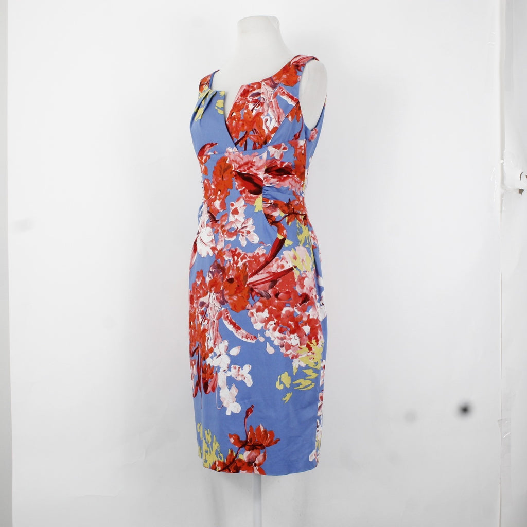 Adrianna Papell Dress Sz 8 Blue Red Multi Color Floral V Neck Cotton Spandex
