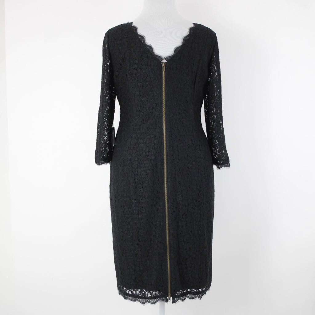 Adrianna Papell NEW $188 Sz 20W Black Lace Lined Viscose Nylon Knee Length Dress
