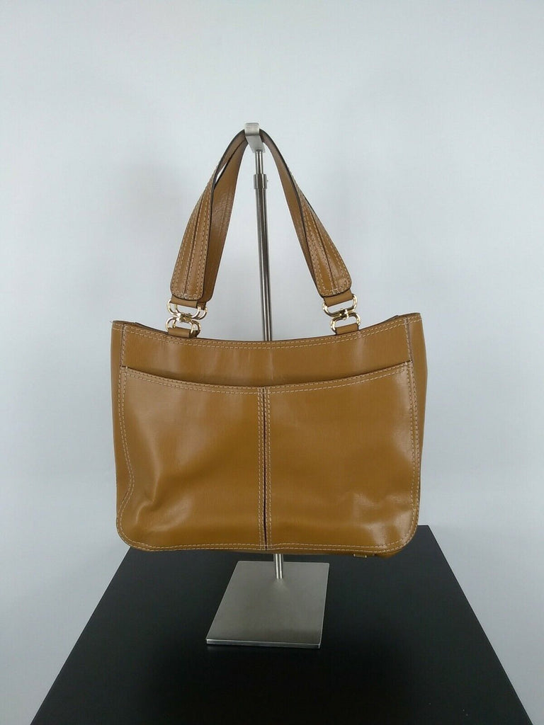 Adrienne Vittadini Sz 10 x 15 Camel Top Stitch Zip Satchel Purse