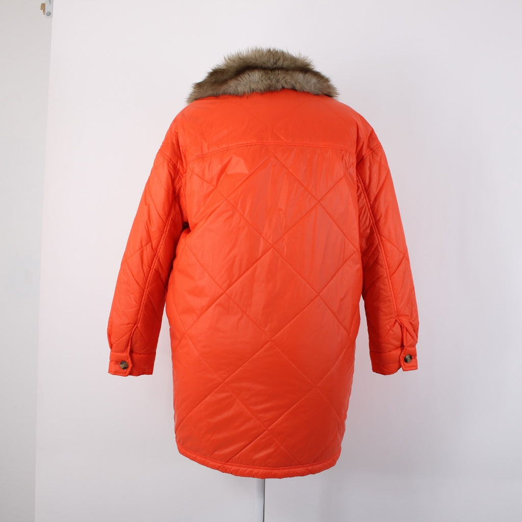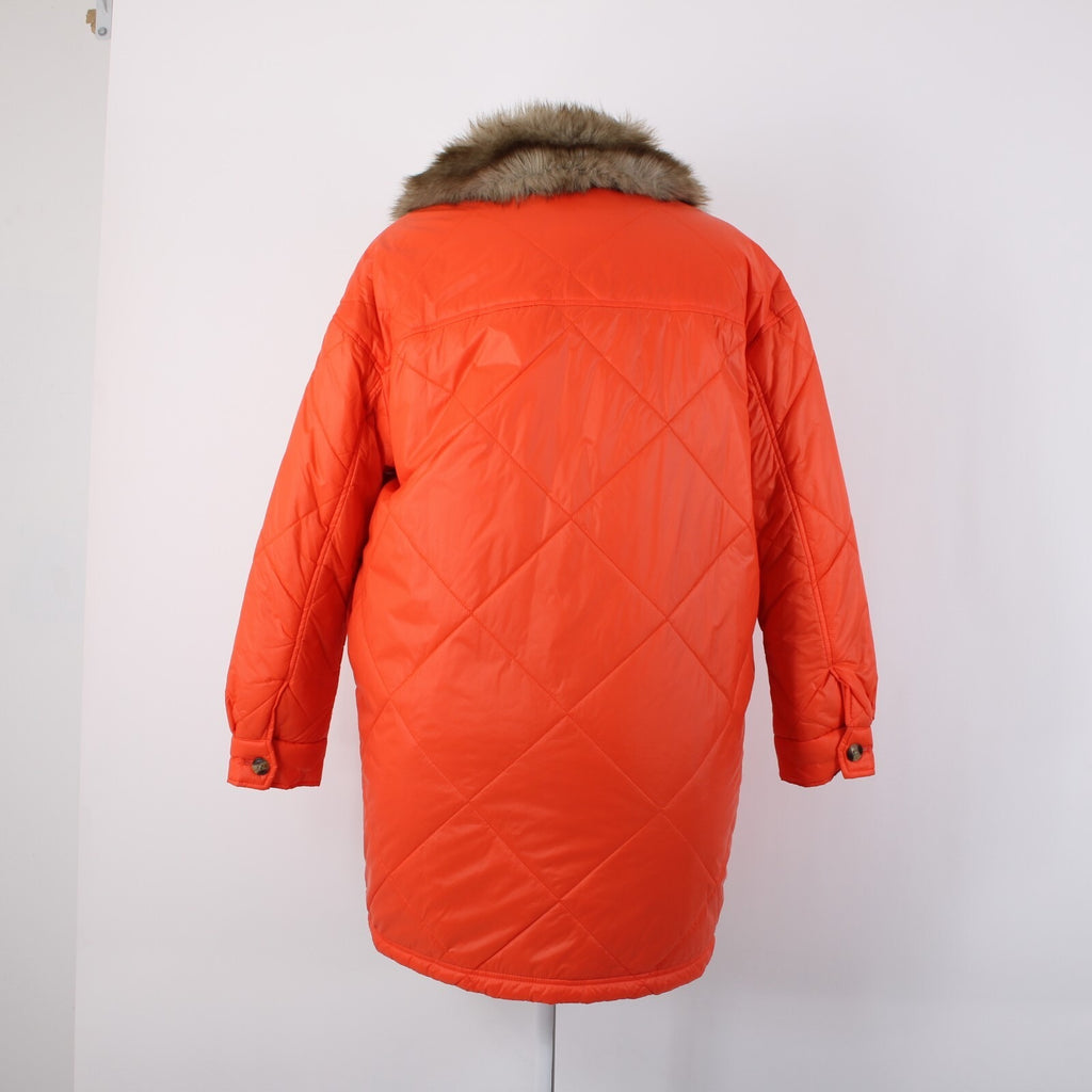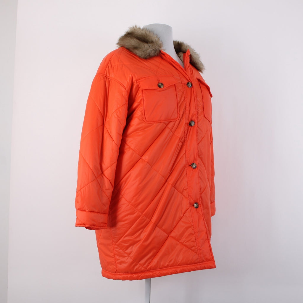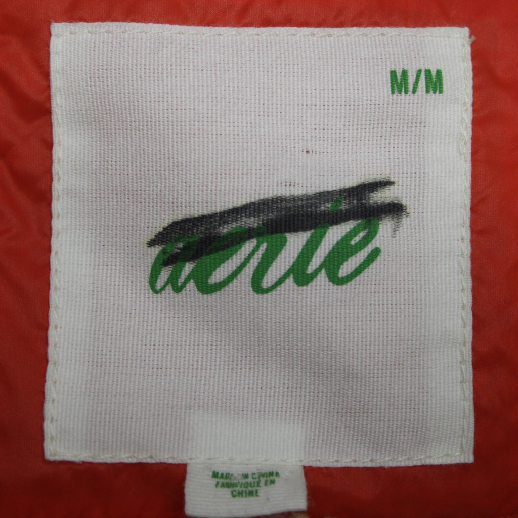 Aerie Sz M Orange Faux Fur Puffer Pockets Buttons Acrylic Nylon Poly Jacket