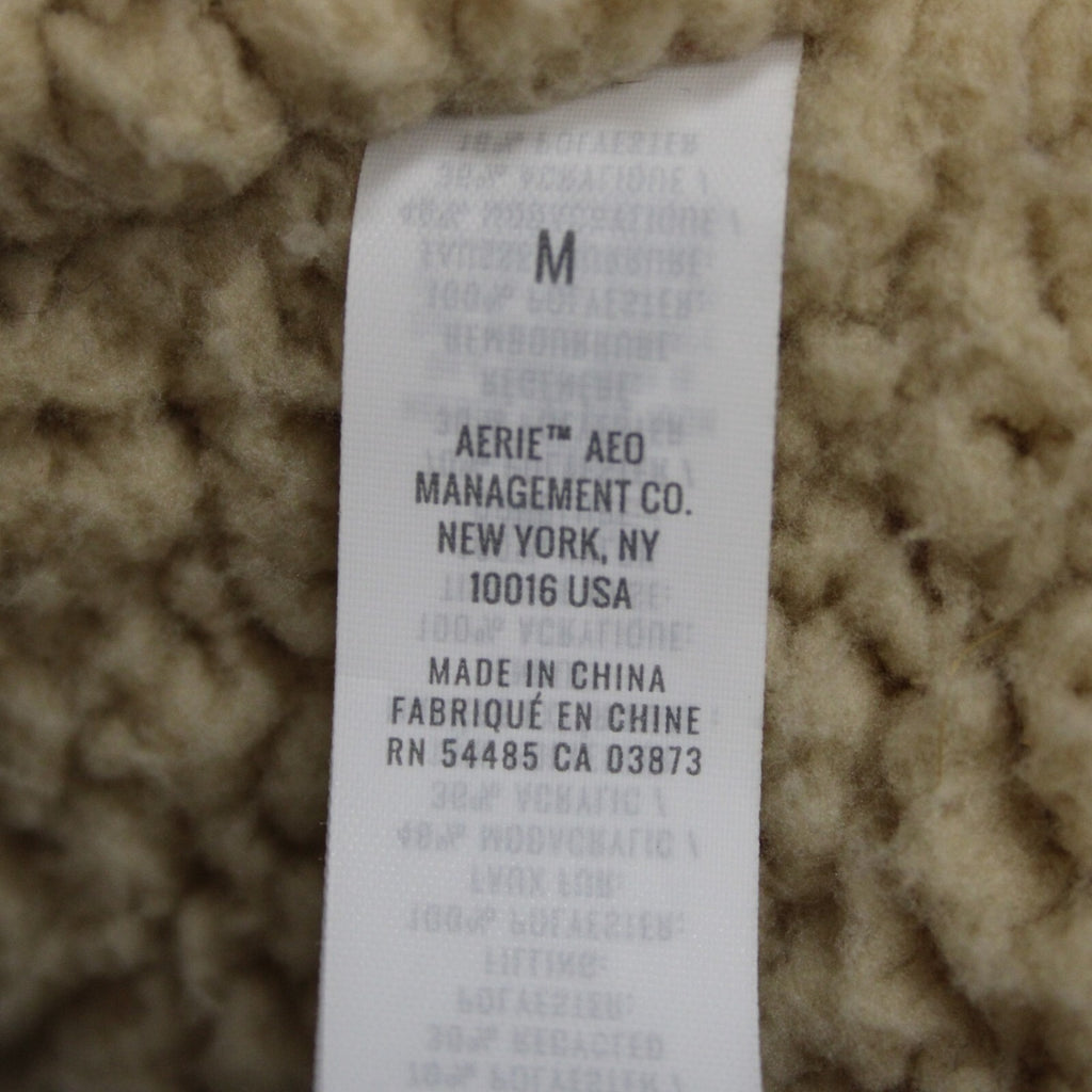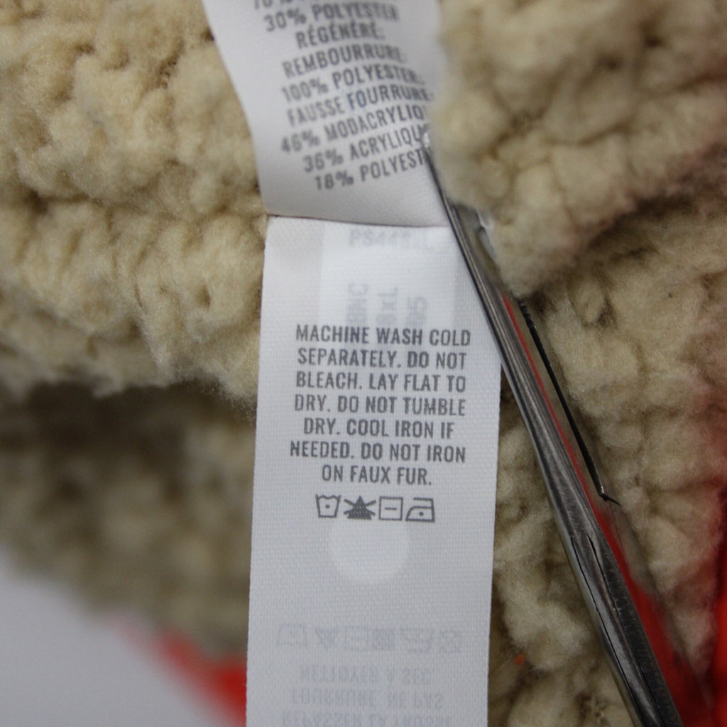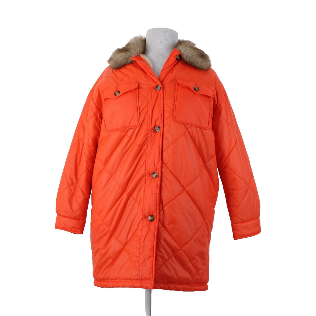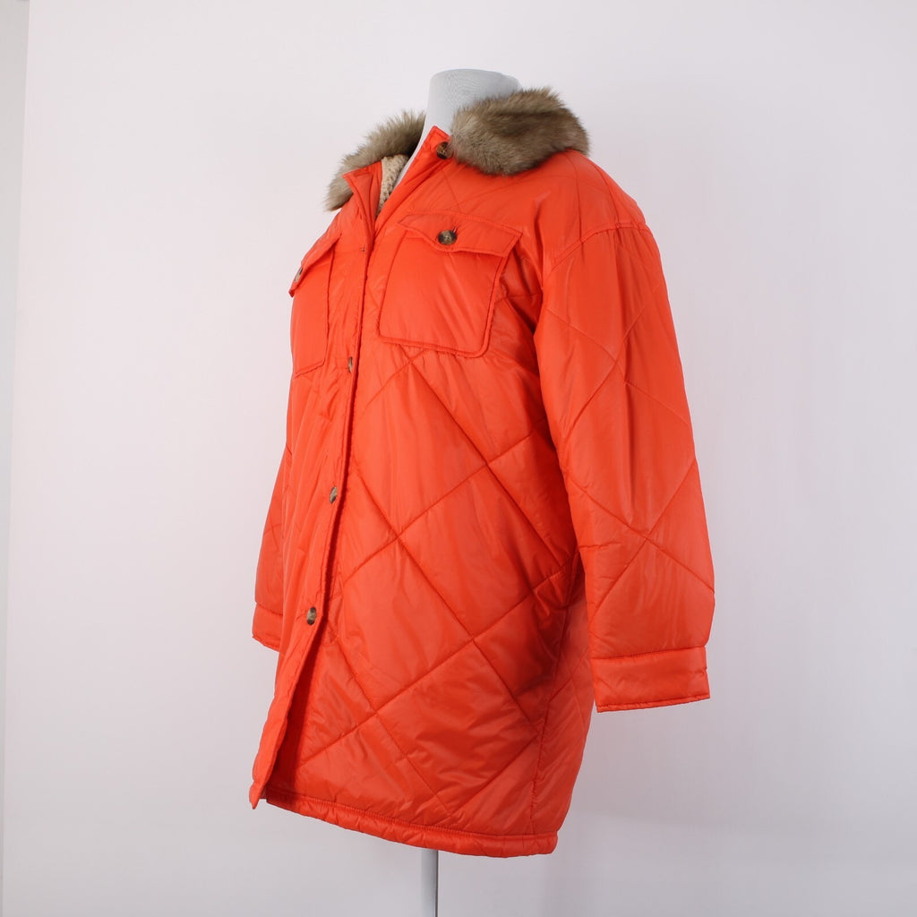 Aerie Sz M Orange Faux Fur Puffer Pockets Buttons Acrylic Nylon Poly Jacket