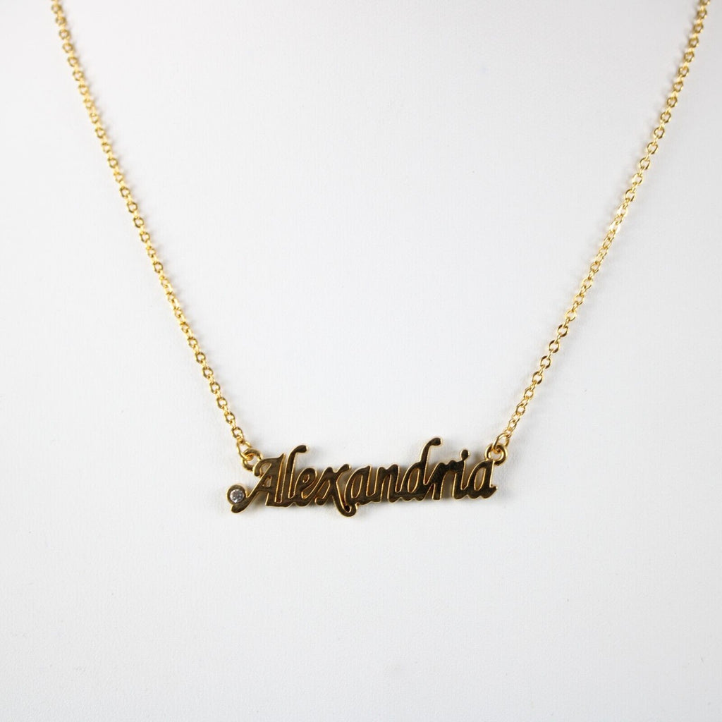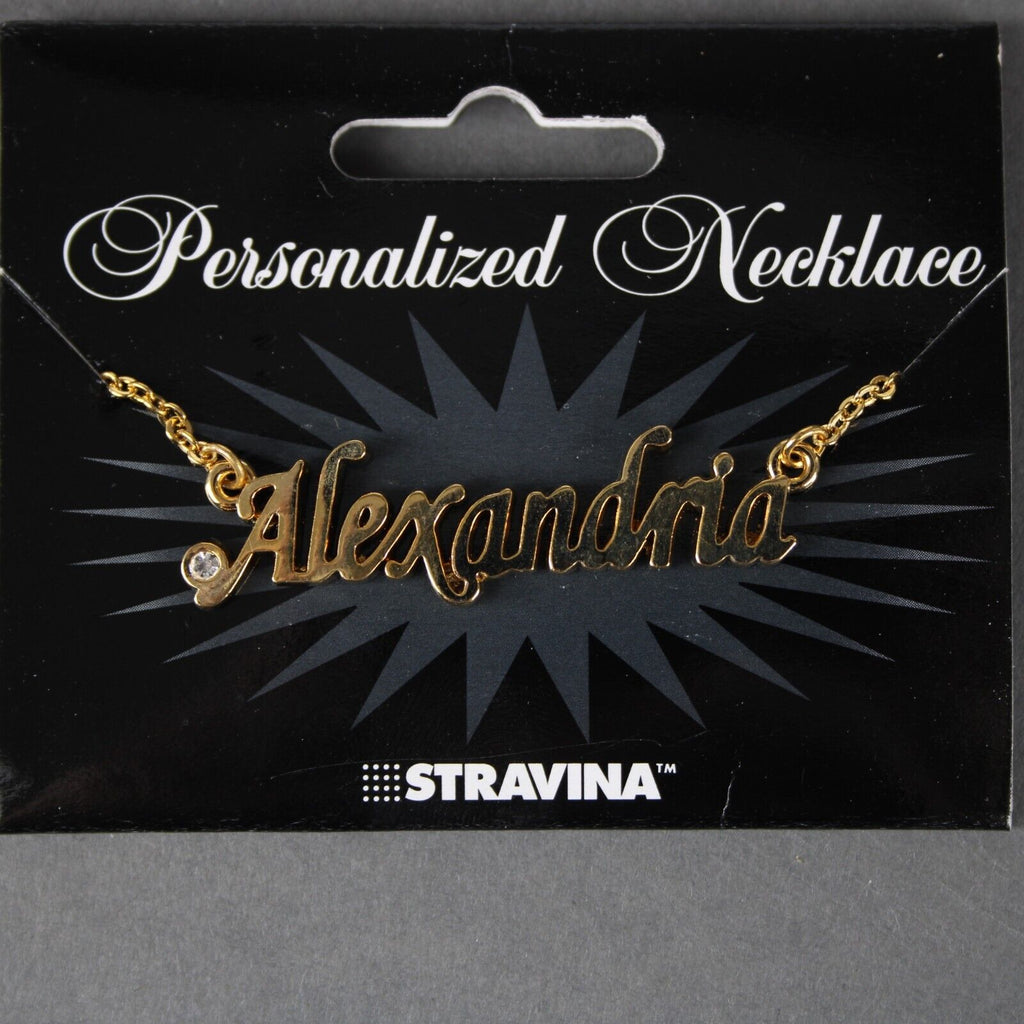 ALEXANDRIA Name Goldtone Rhinestone Accent 14.5" w 4.5" Multi Ring Ext Necklace