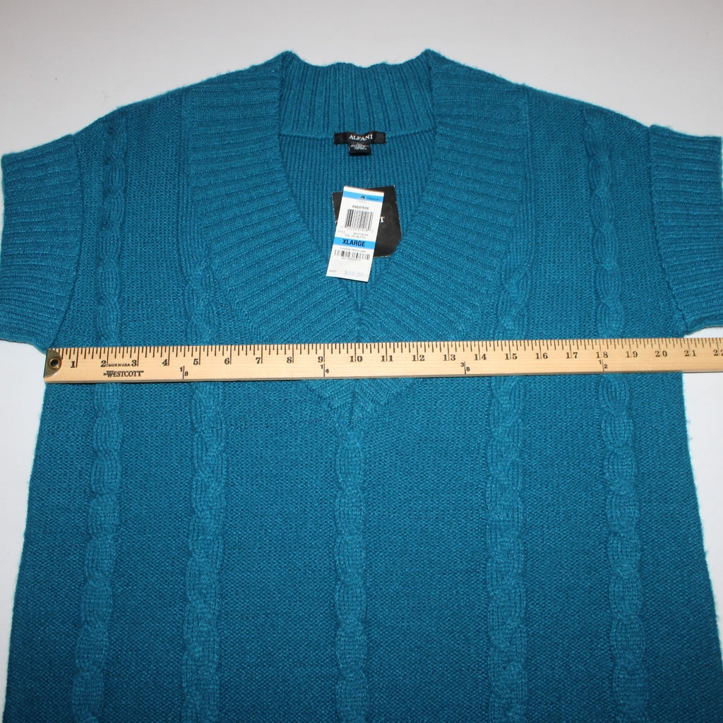 Alfani Sweater NEW $59 Sz XL Teal Blue Knit V Neck Ribbed Acrylic Sweater