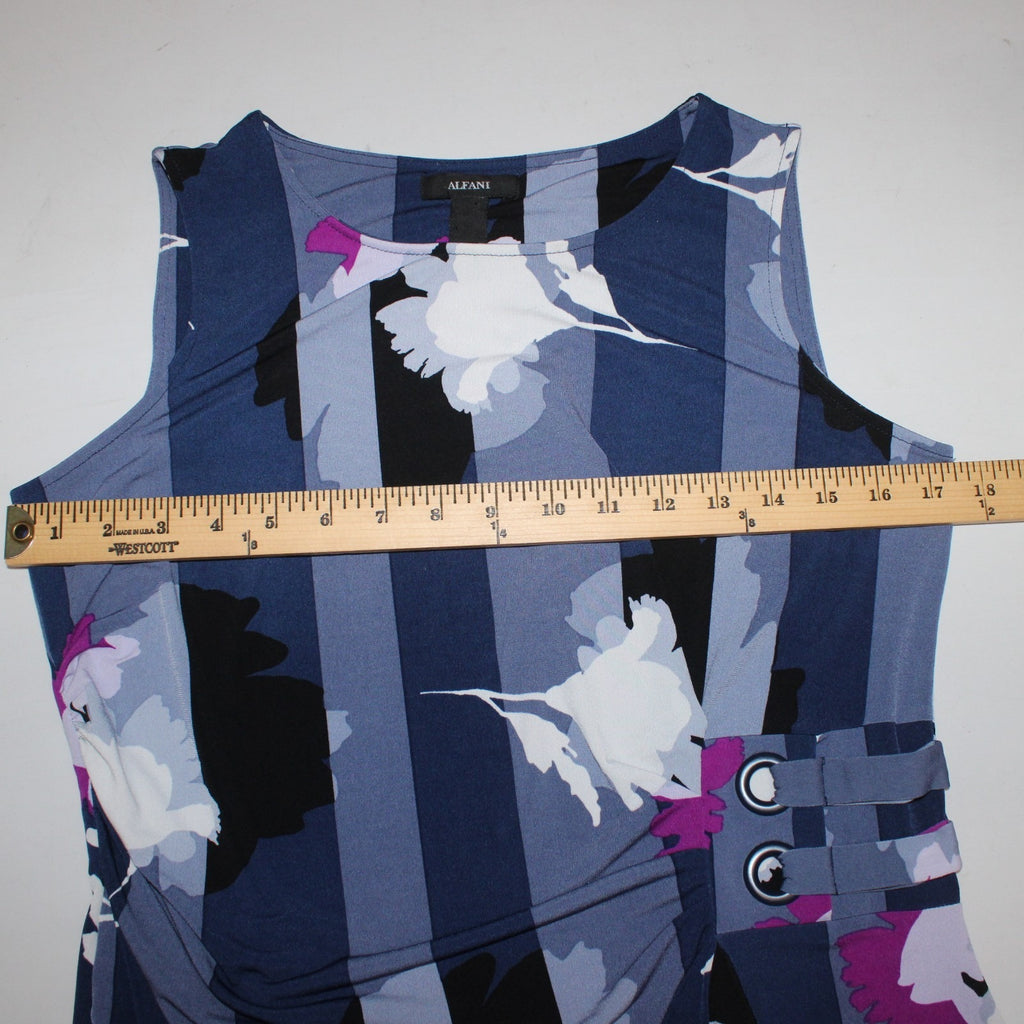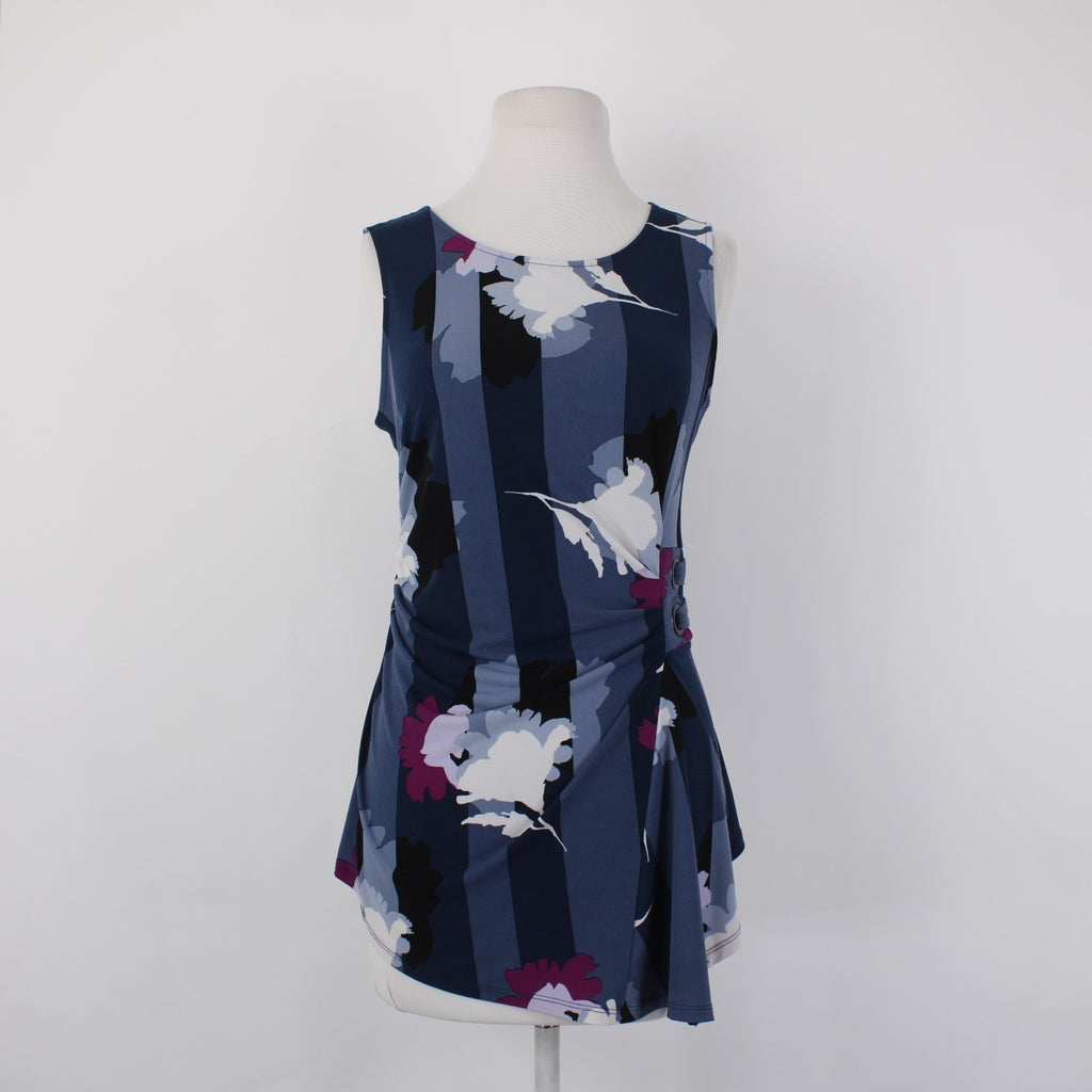 Alfani Top Sz S Navy Blue White Purple Ruched Side Asymmetrical Poly Spandex Top