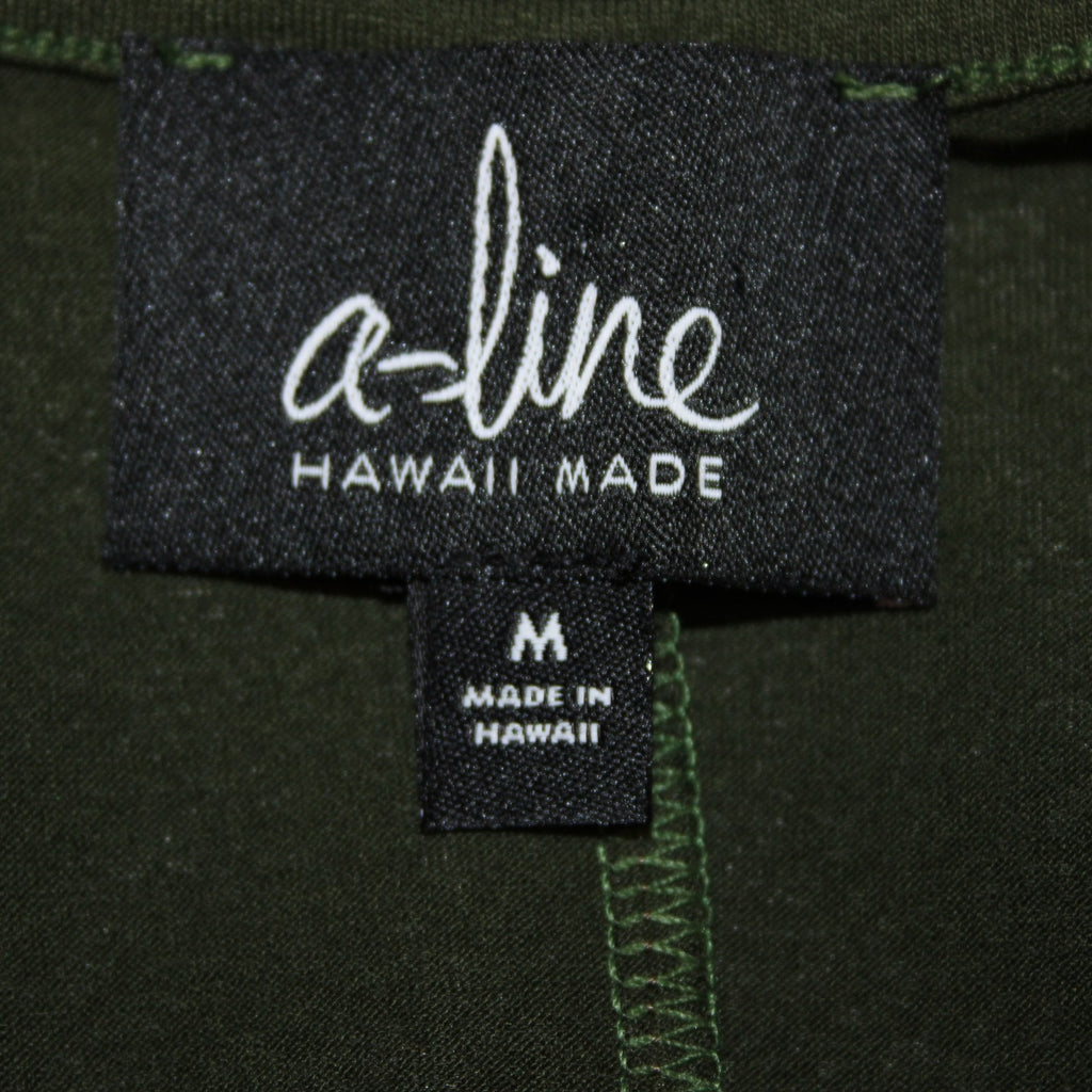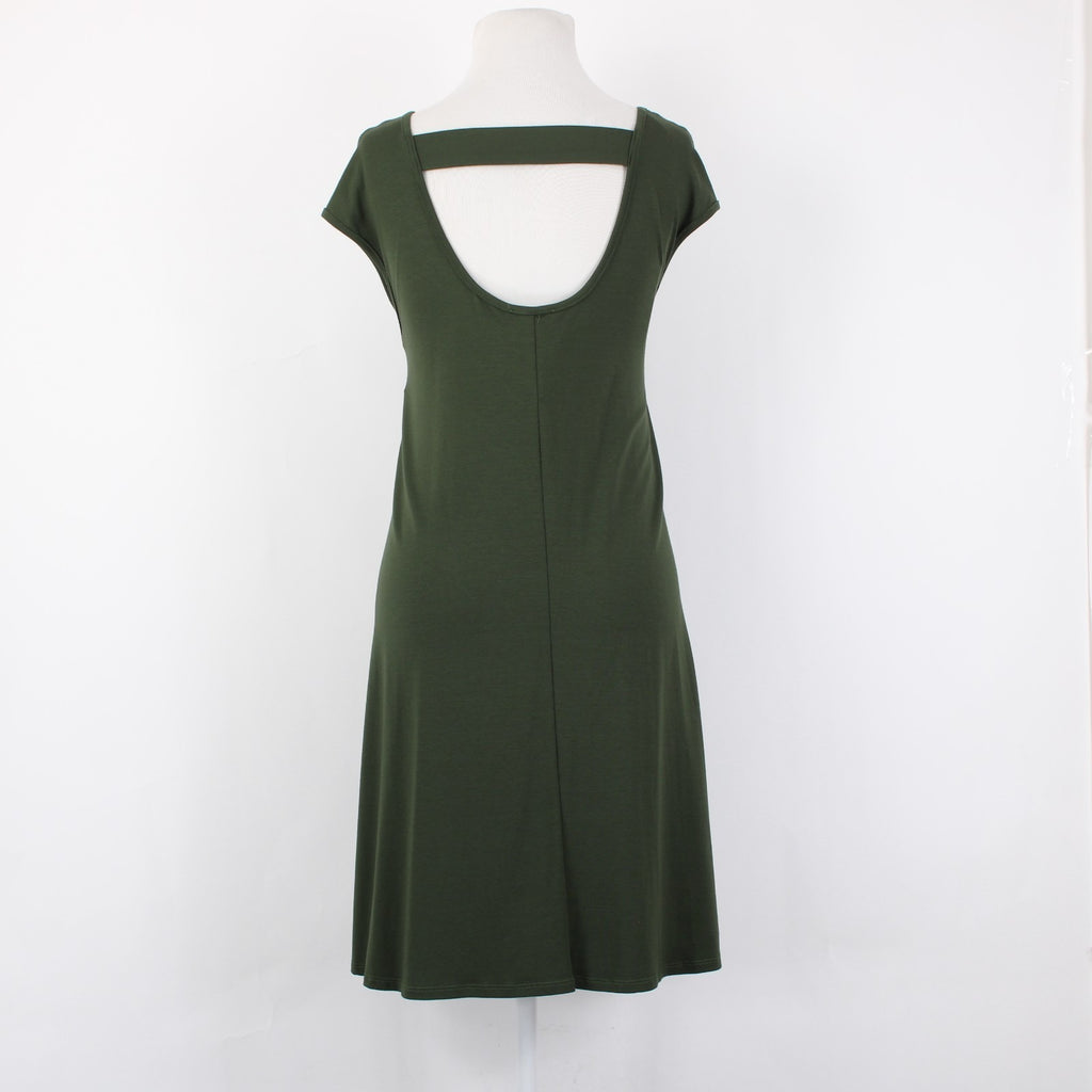 Aline Dress NEW $88 Sz M Green Open Back Unlined Hawaii Made Rayon Spandex Dress
