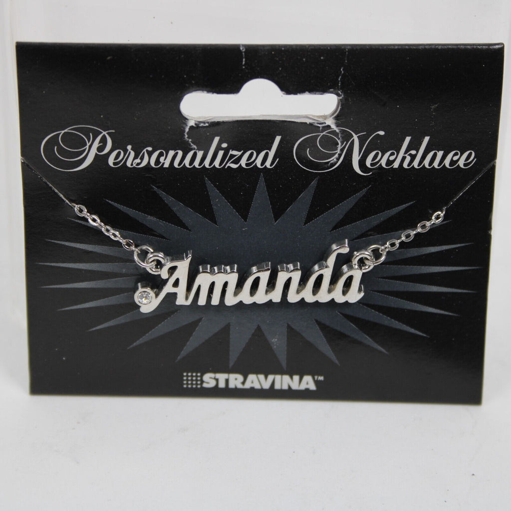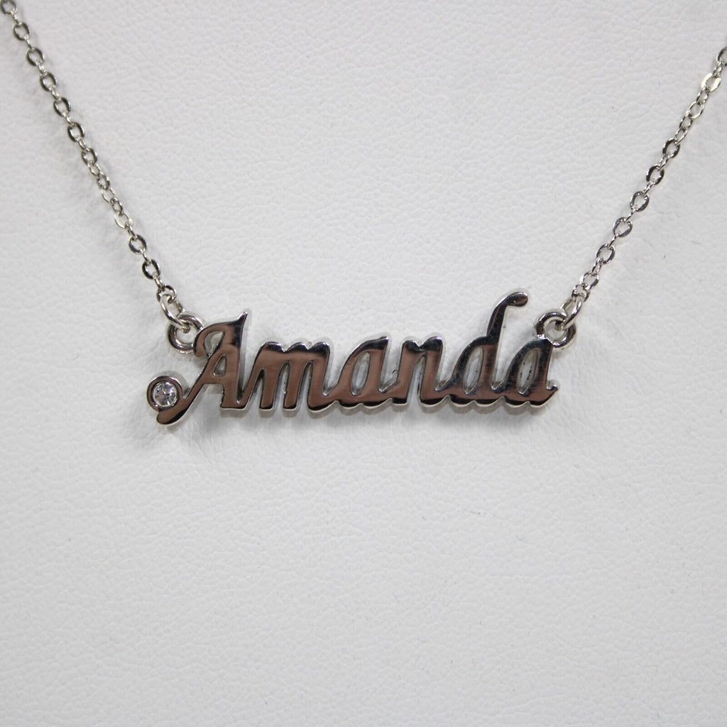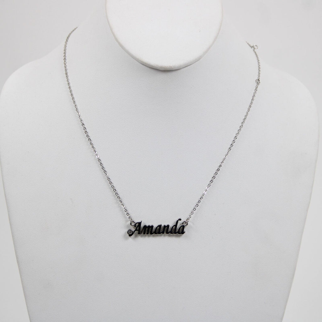 AMANDA NEW Name Silvertone Rhinestone 14.5" w 4.5" Multi Ring Ext Necklace