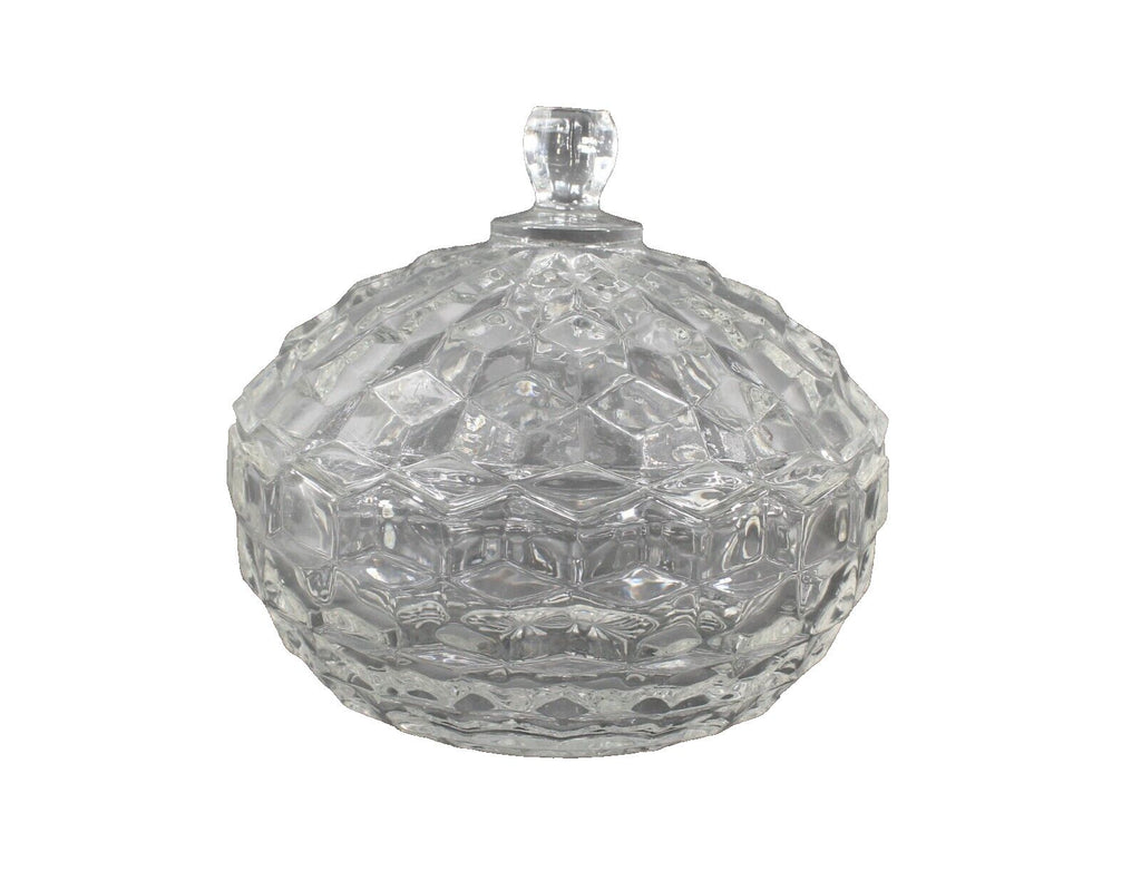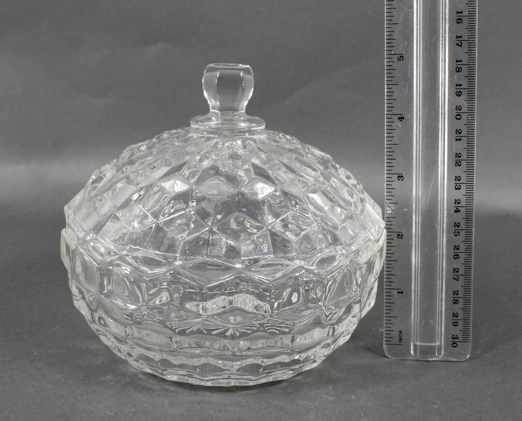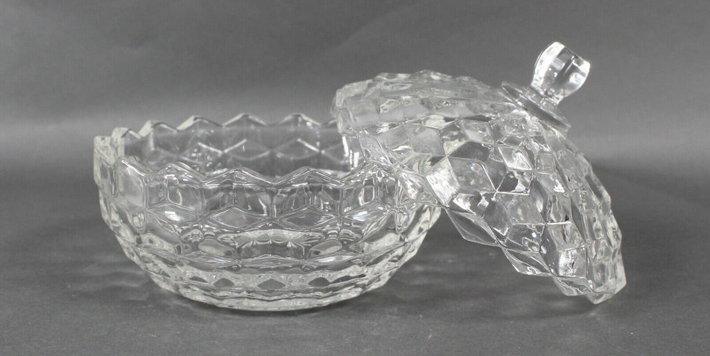 American Fostoria Vintage Clear Glass Cube Pattern W/ Lid 5" Candy Nut Dish