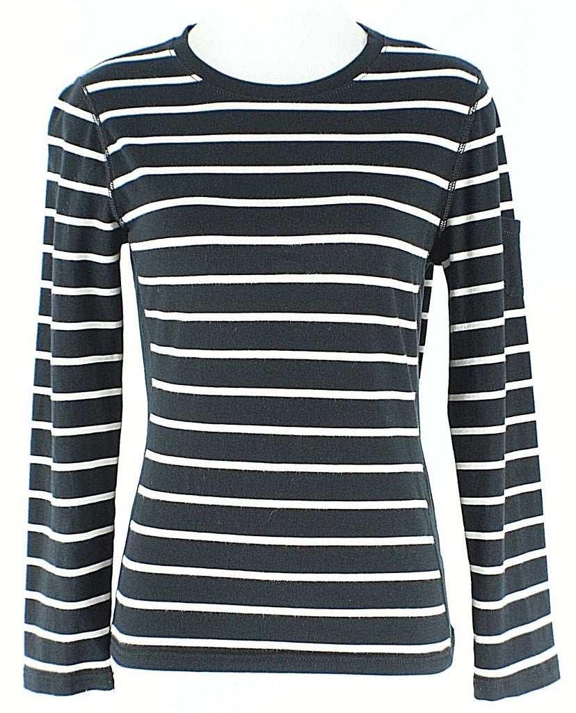 American Living Sz M Black White Stripe Cotton Elastane Knit Top