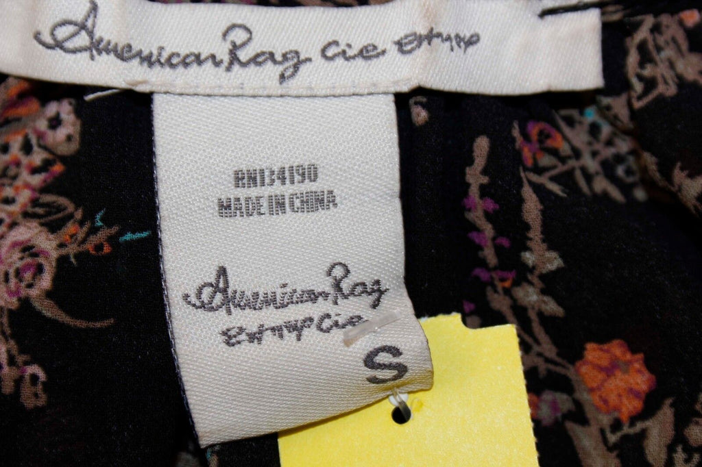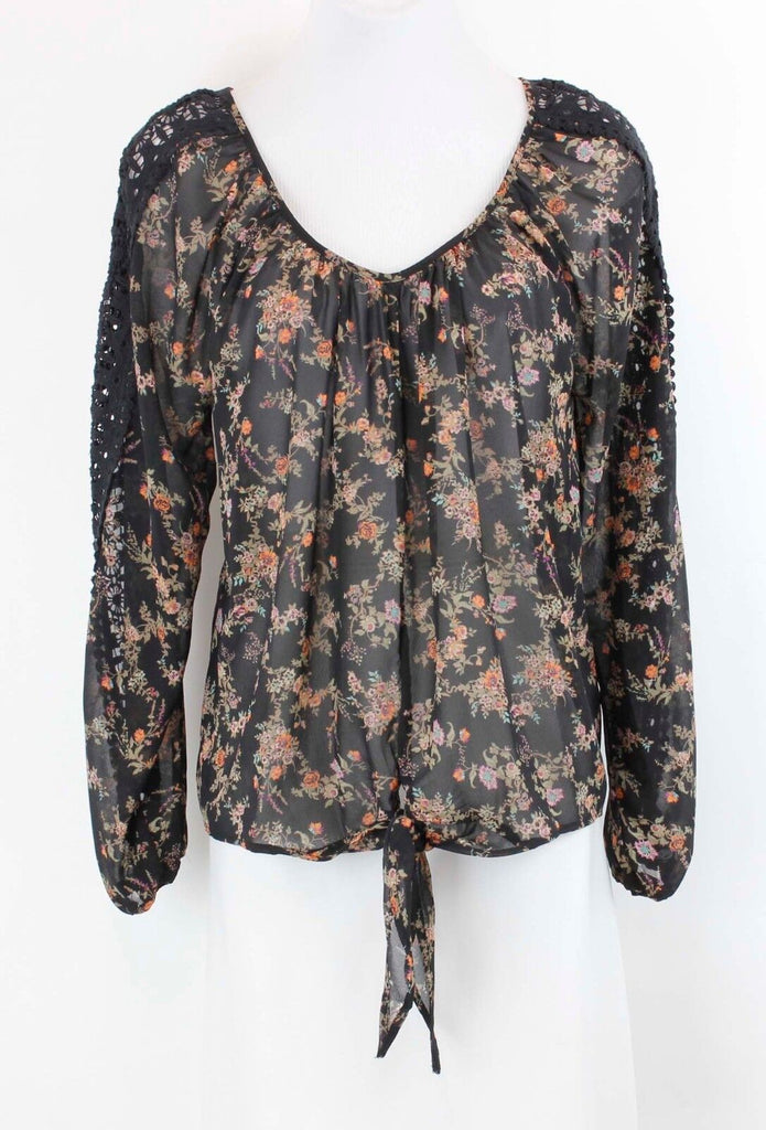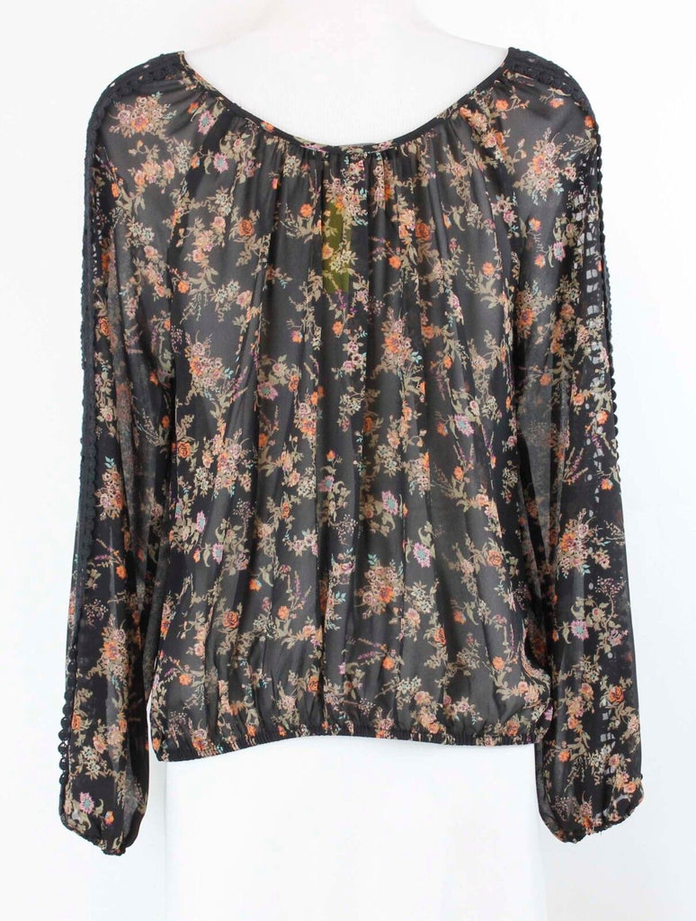 American Rag Sz S Black Peach Green Floral Lace Insert Sheer Polyester Top