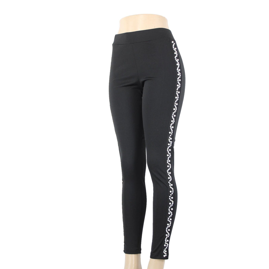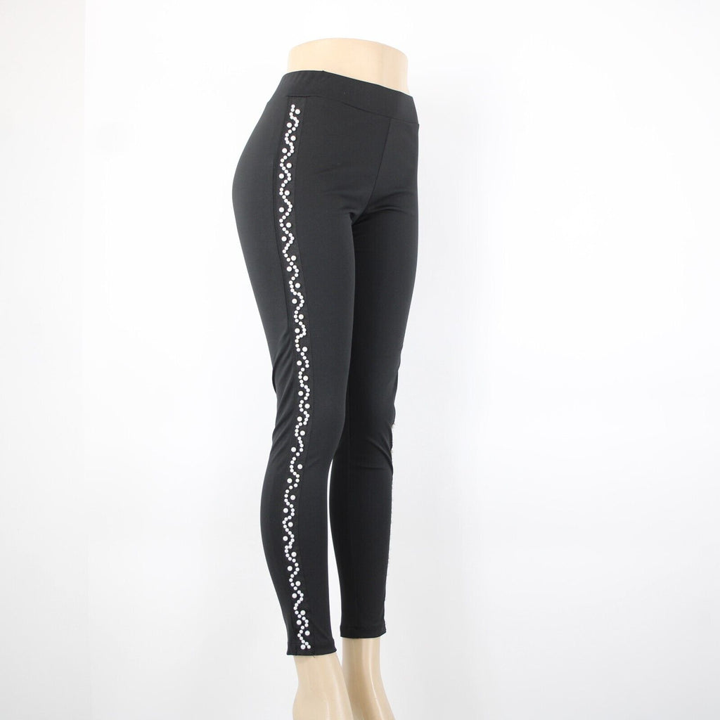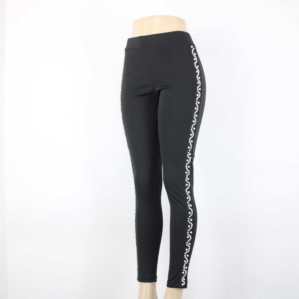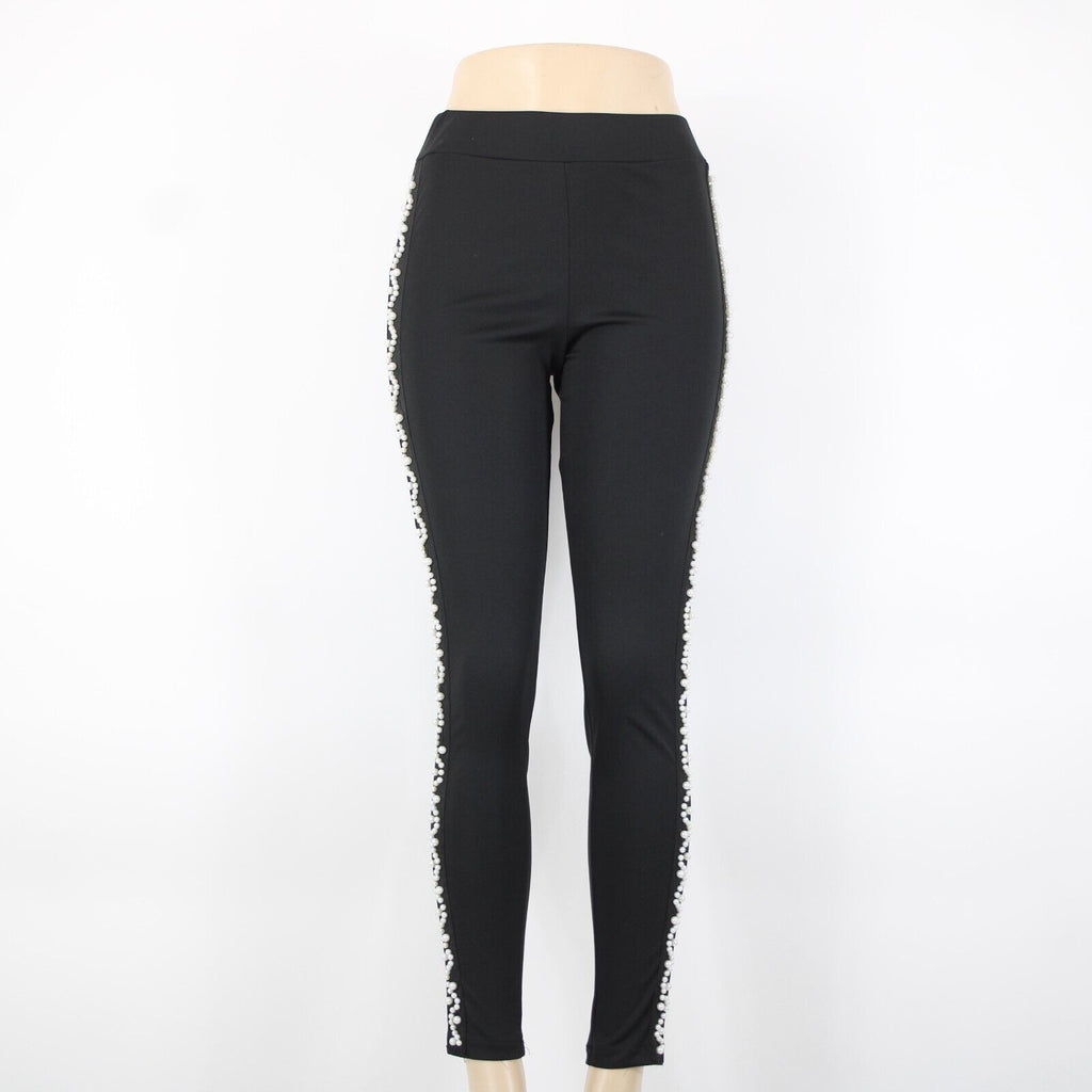 Amor Mio Sz S x 30 Black Faux Pearls Skinny Ankle Polyester Spandex Pants