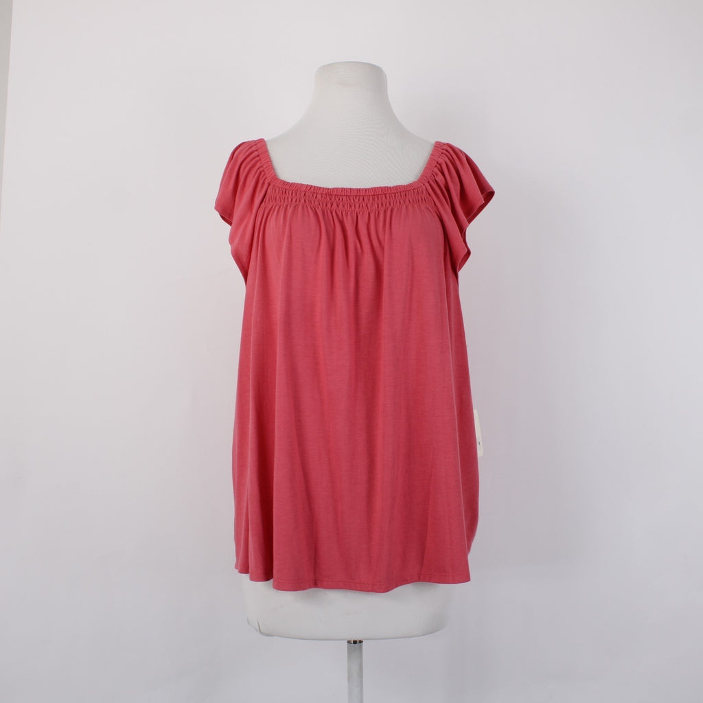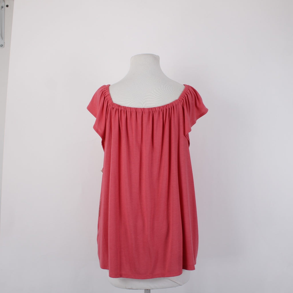 Ana Top NEW $32 Sz XL Pink Tunic Ruffle Unlined Short Sleeve Rayon Poly Top