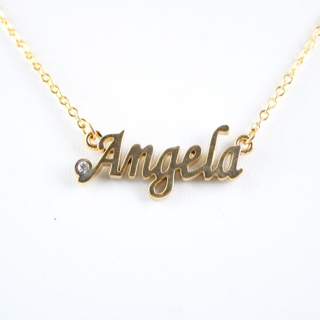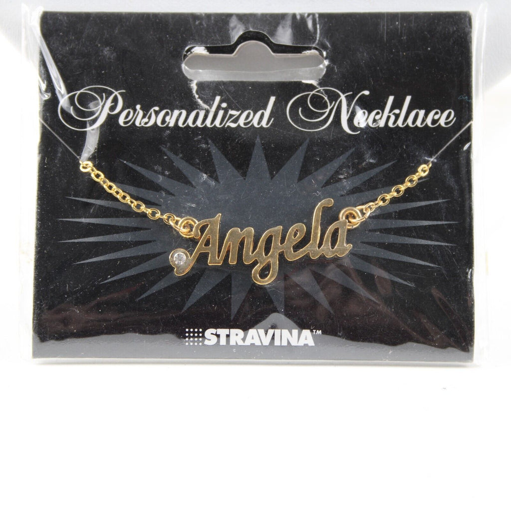 ANGELA NEW Name Goldtone Rhinestone Accent 14.5" w 4.5" Multi Ring Ext Necklace