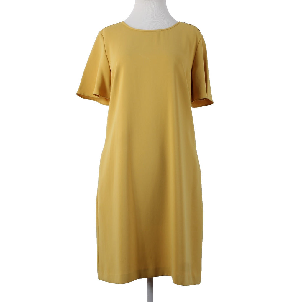 Ann Taylor Dress Sz 10 Mustard Yellow Pockets Knee Length 100% Polyester Dress