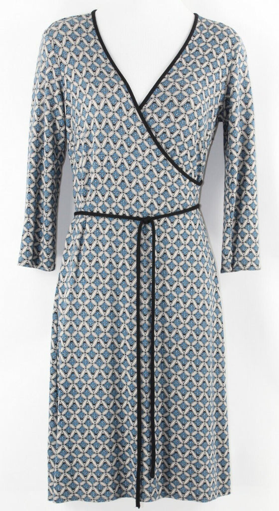 Ann Taylor LOFT Sz 0 Blue Black Gray 2Pc Belt Faux Wrap Rayon Blend Dress