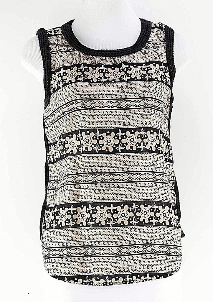 Ann Taylor LOFT Sz M Black Tan Cotton Woven Trim Sleeveless Top