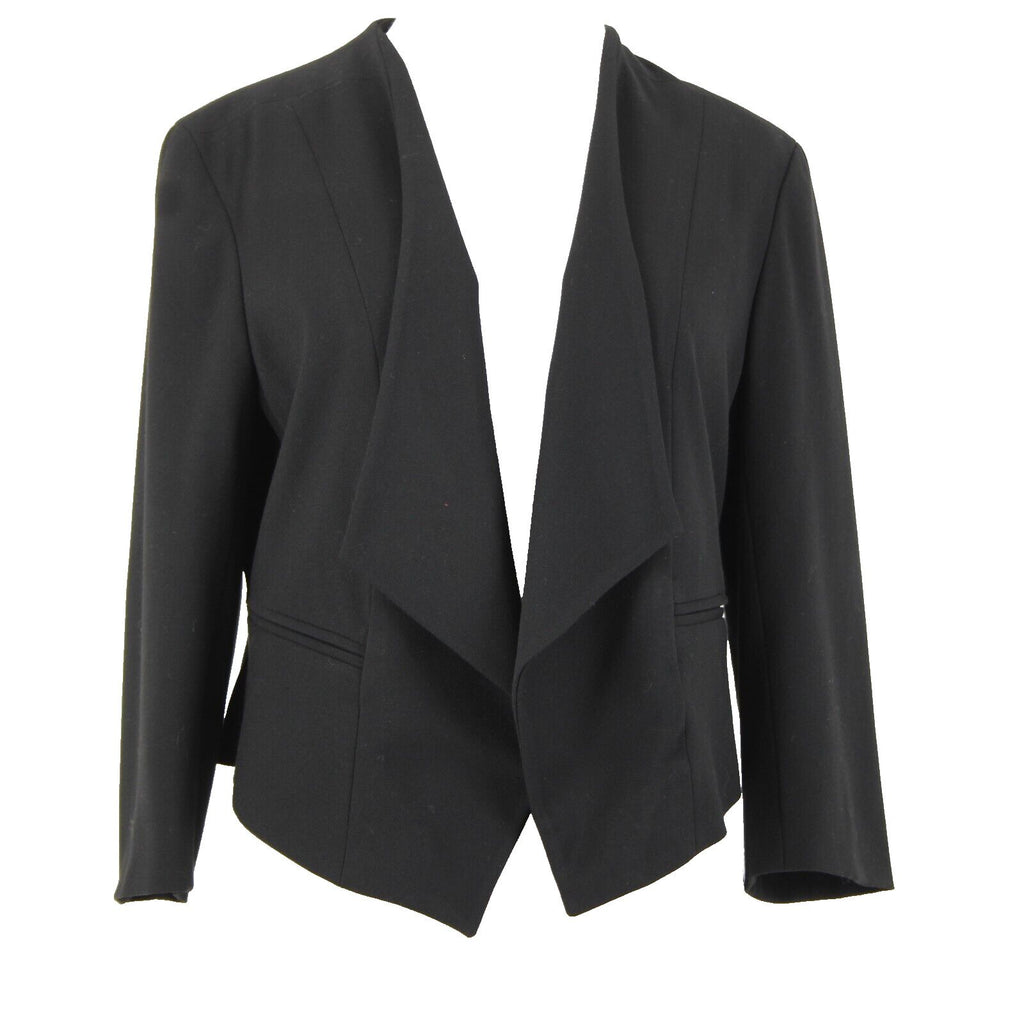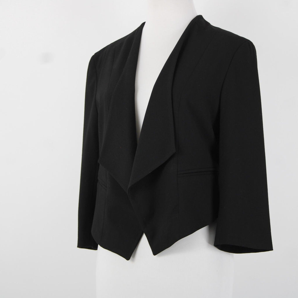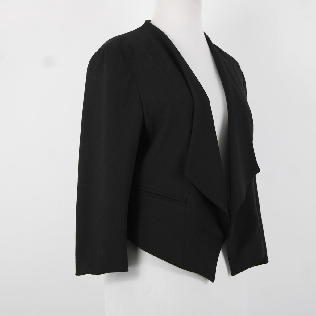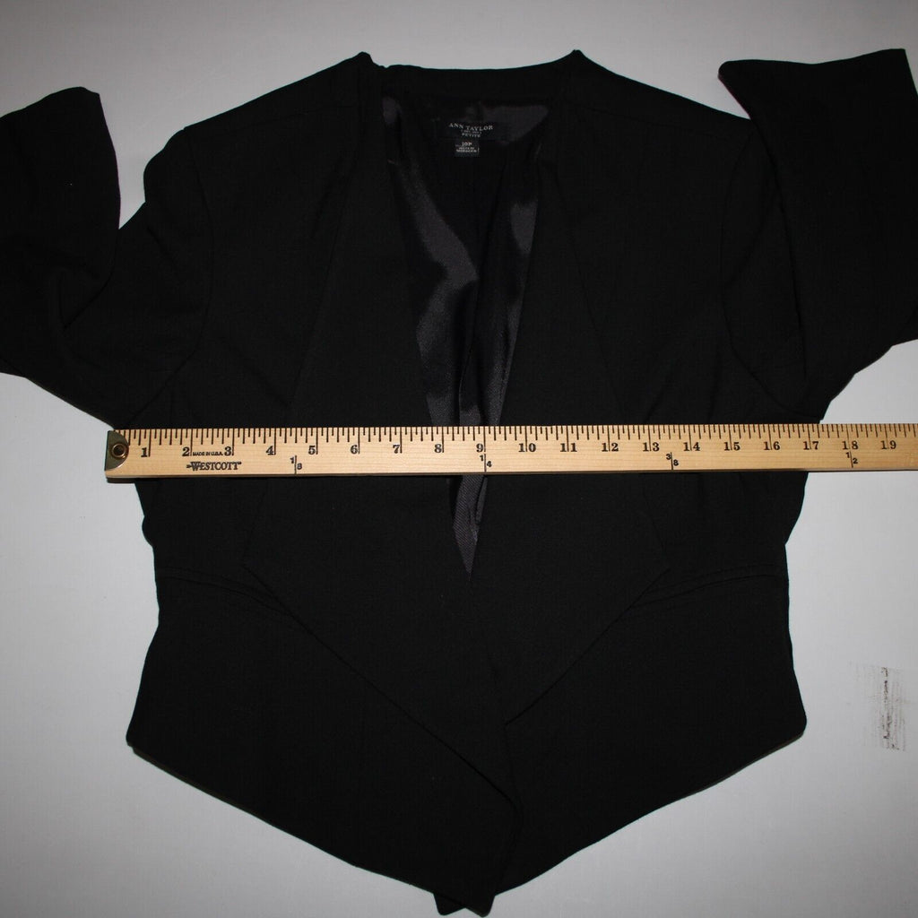 Ann Taylor Petite Sz 10P Black Peplum Padded Shoulder Polyester Rayon Blazer