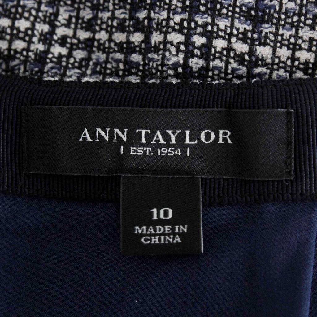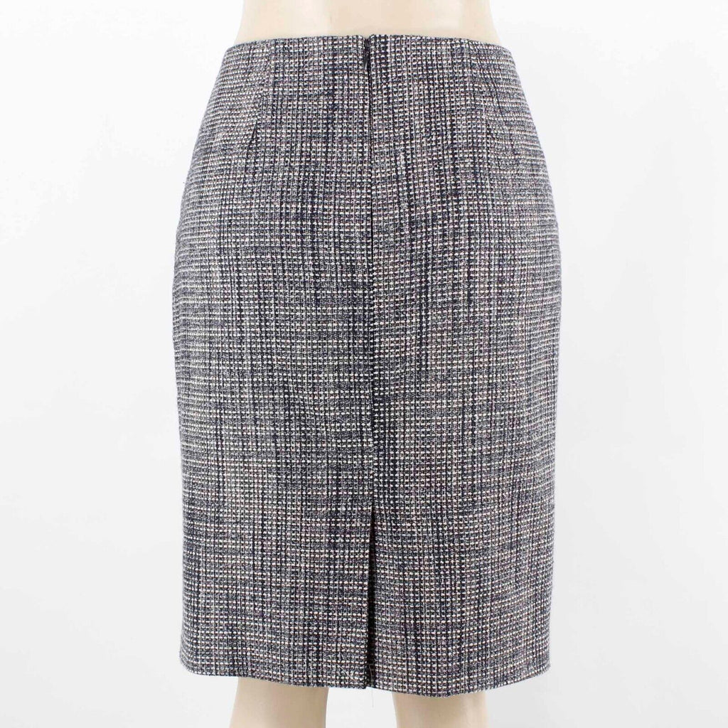 Ann Taylor Sz 10 Navy Blue Multi Texture Pencil Kick Pleat Poly Blend Skirt