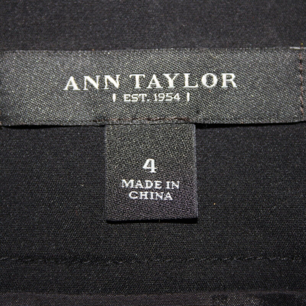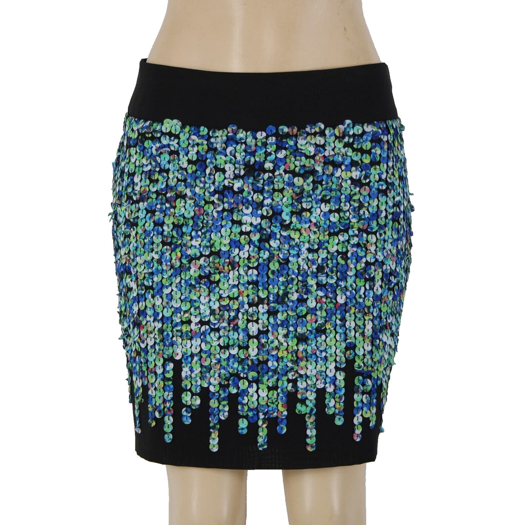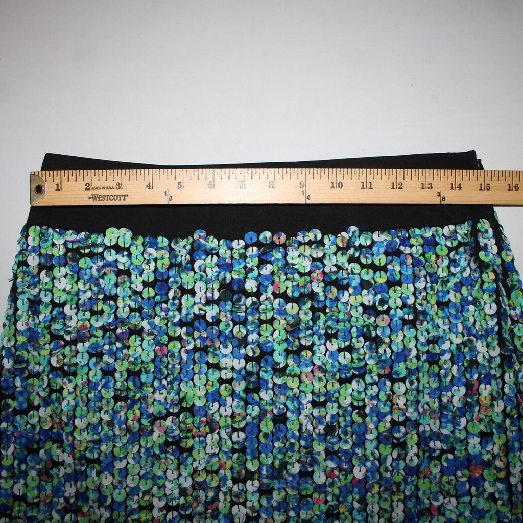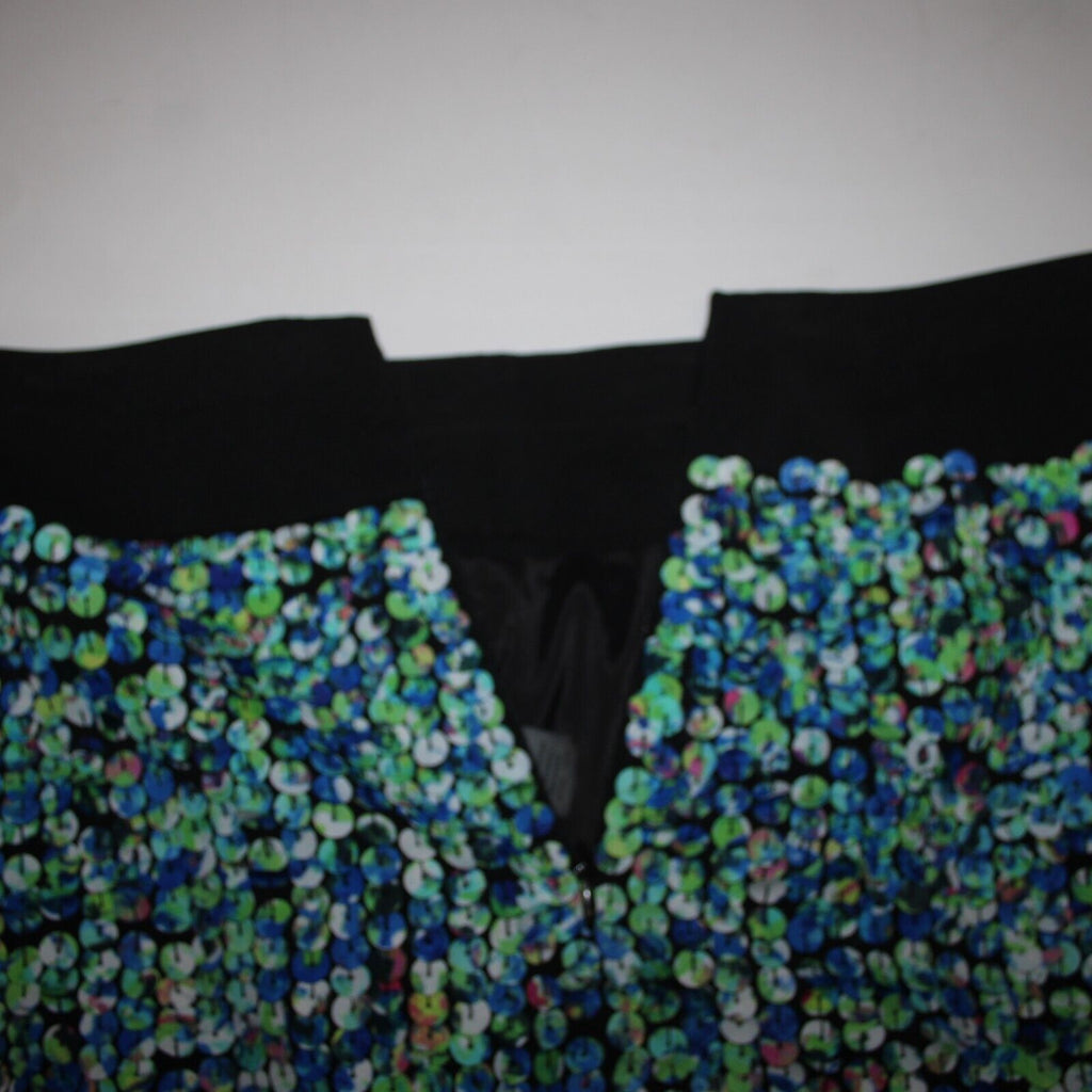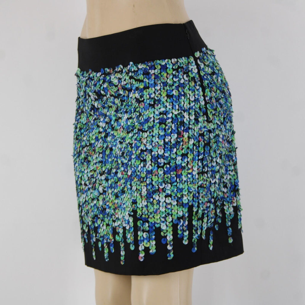 Ann Taylor Sz 4 Black Blue Green Applique Lined Polyester Spandex Pencil Skirt