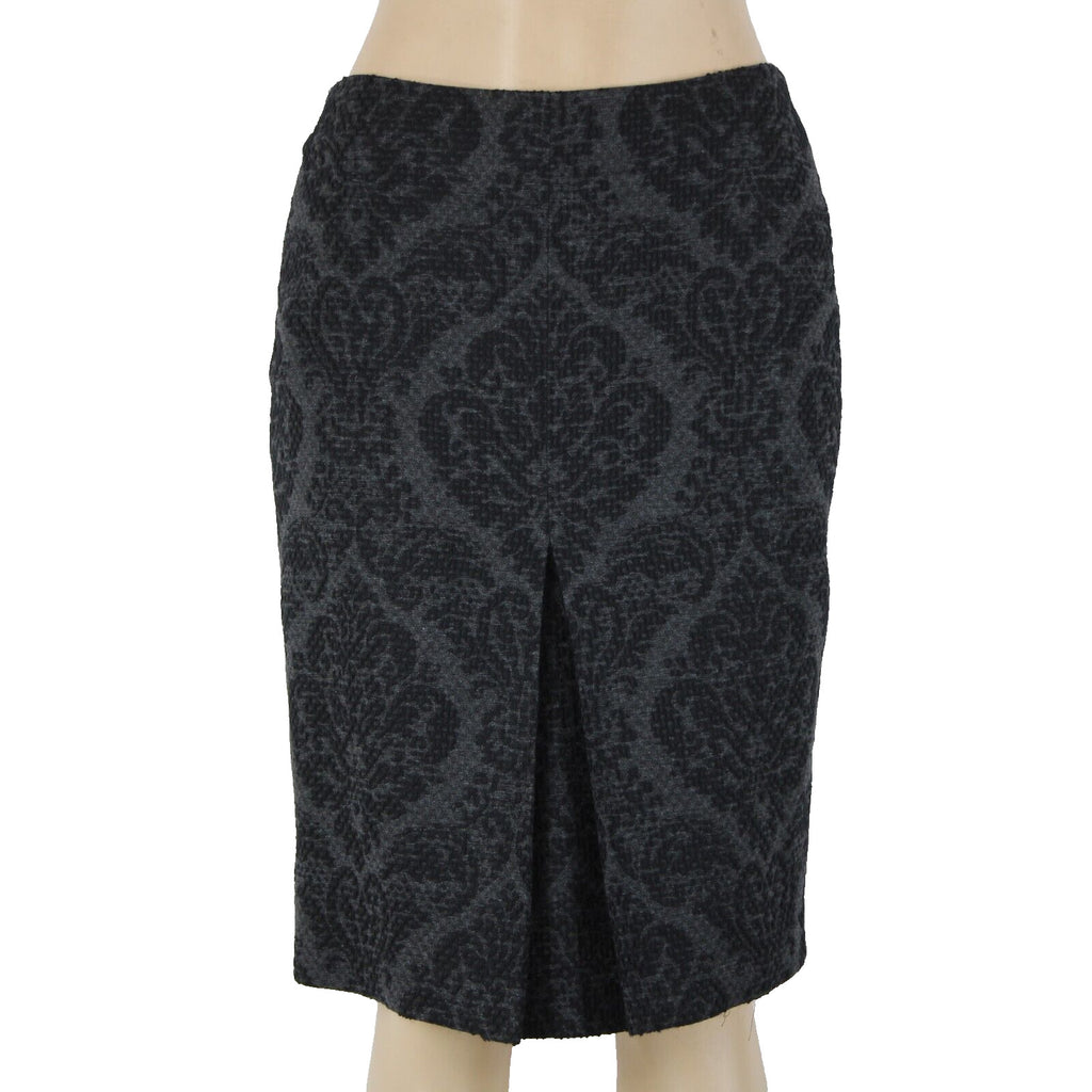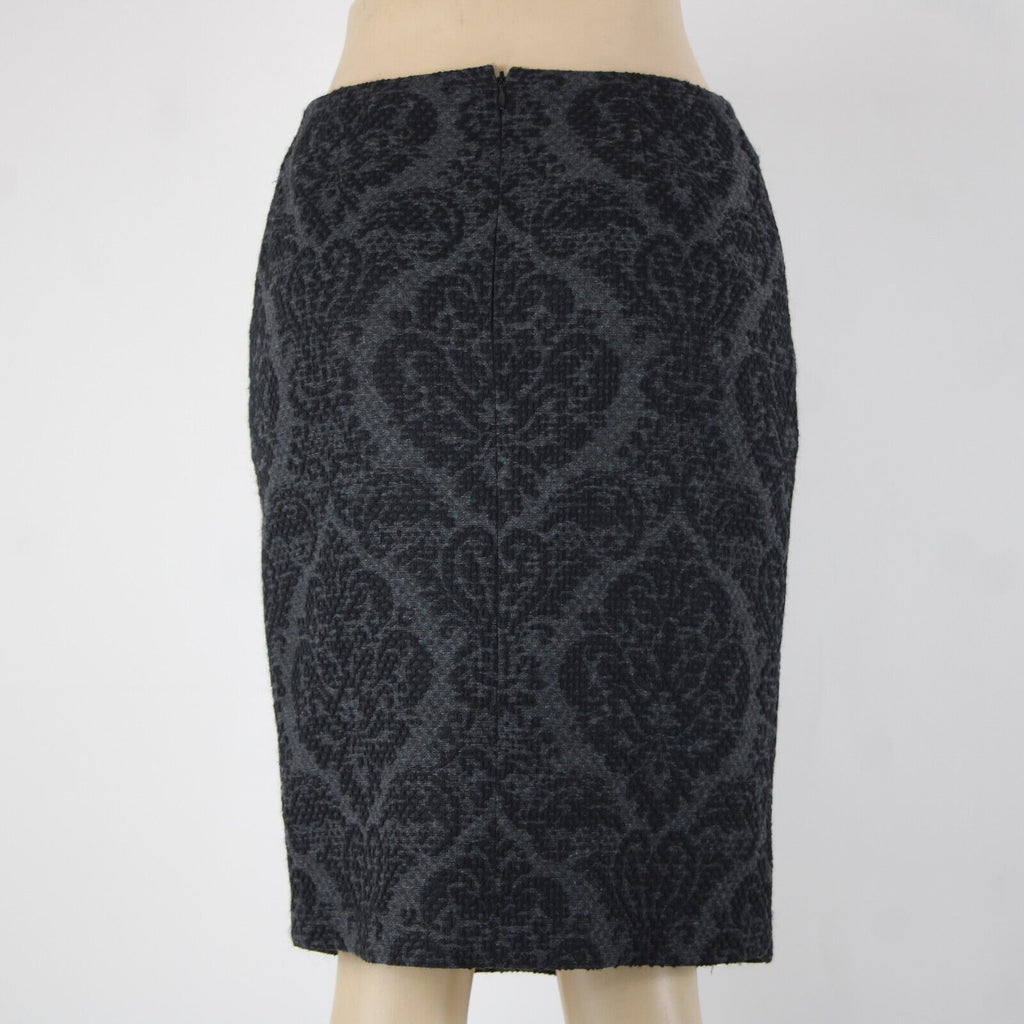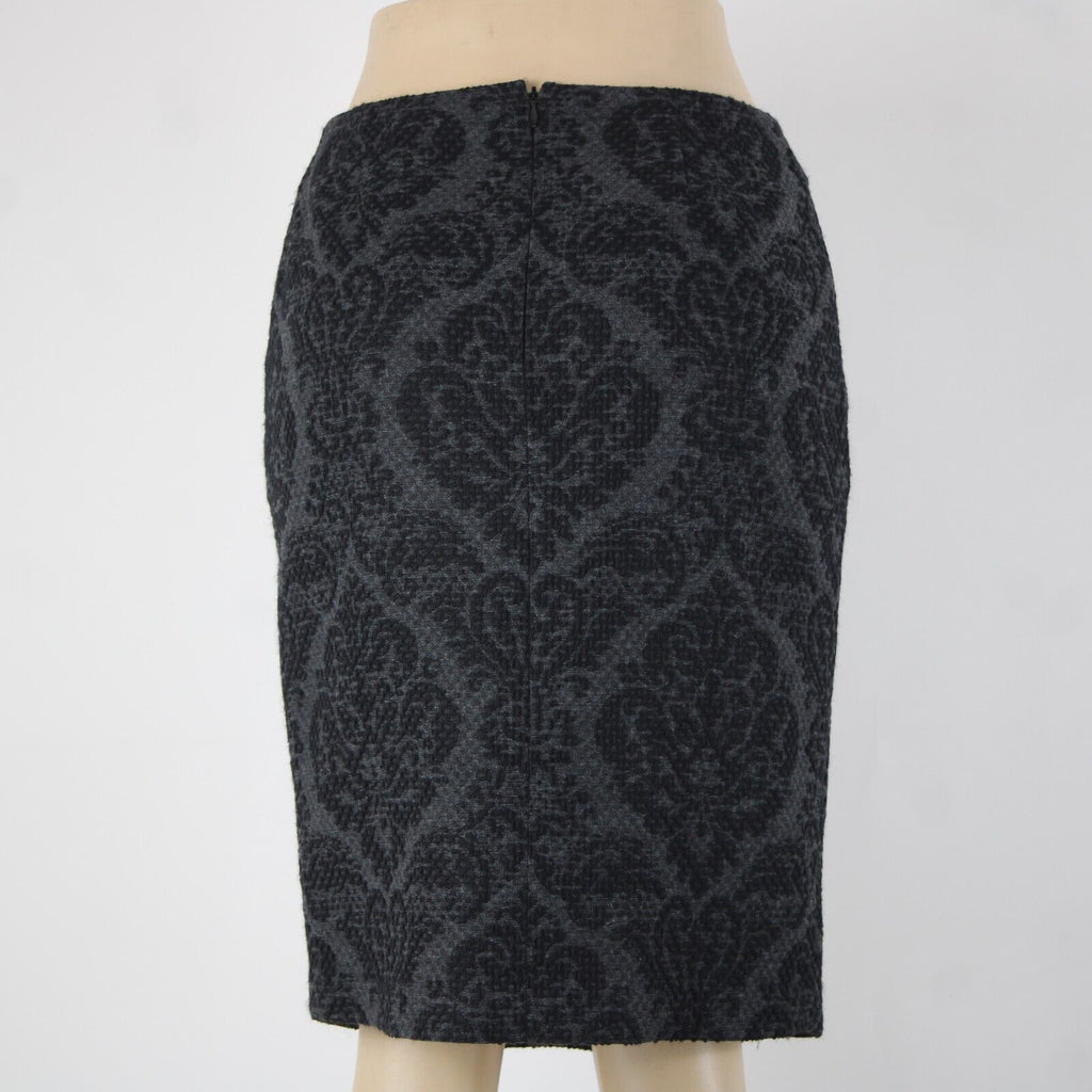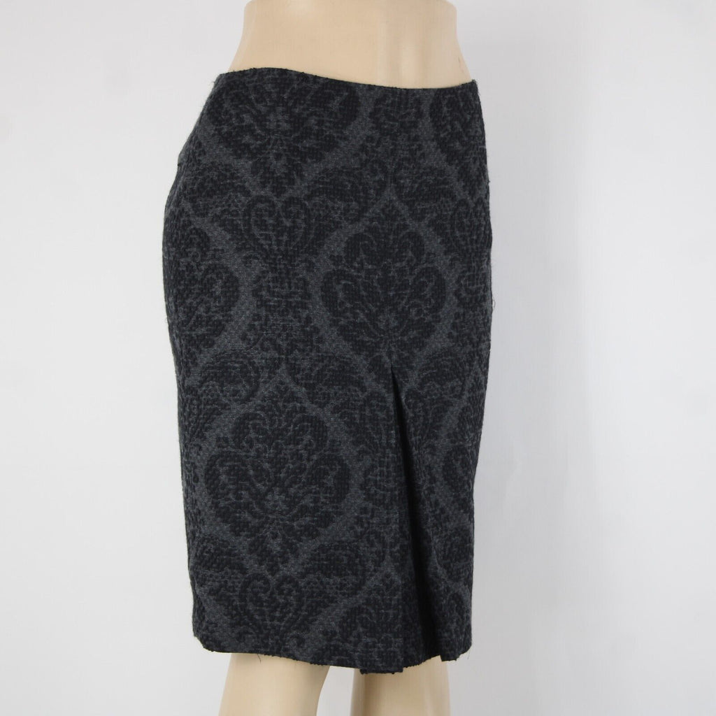 Ann Taylor Sz 6 Black Gray Patterned Inverted Pleat Wool Cotton Nylon Skirt