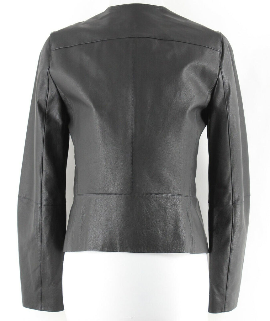 Anne Klein NEW $250 Sz 4 Black Zip Front 100% Leather Acetate Lined Jacket
