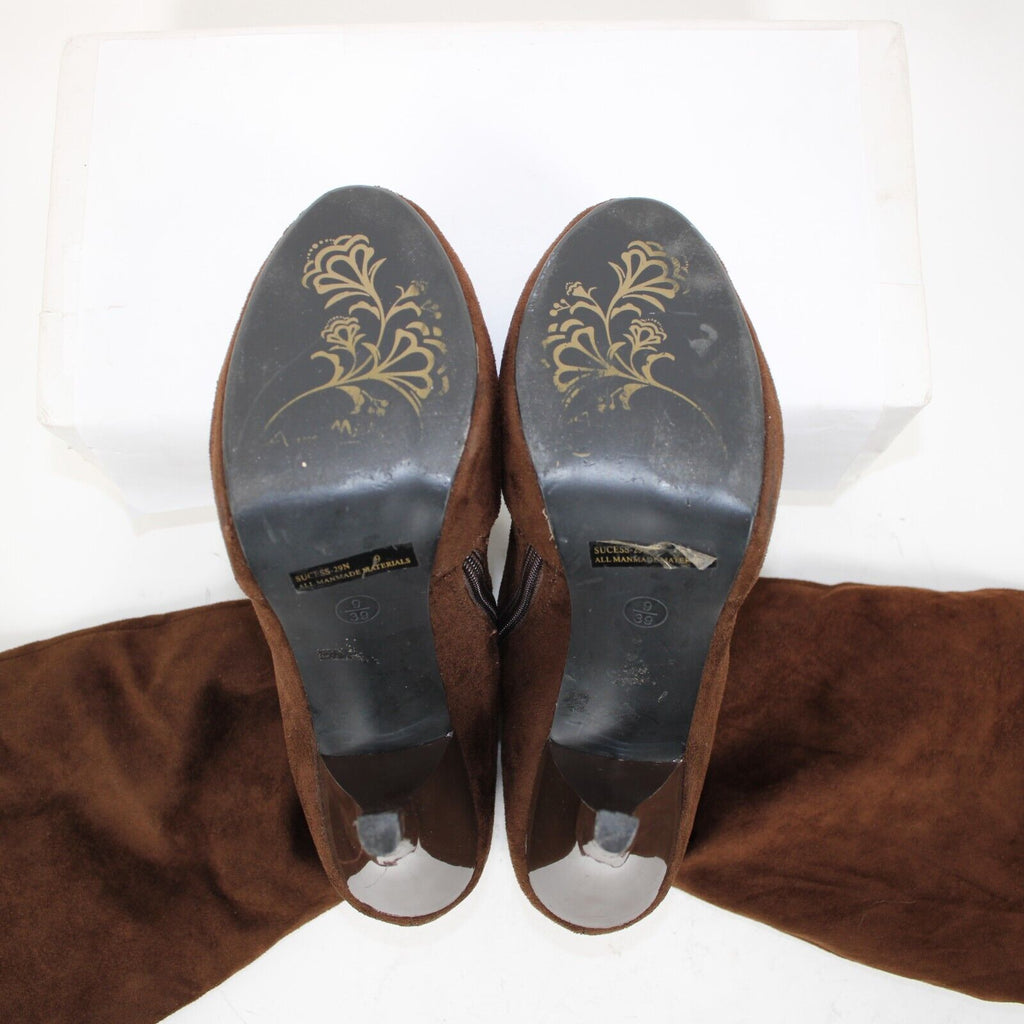 Anne Michelle Sz 9 Brown Faux Suede Upper Faux Fur Inner 4" Thigh High Boots