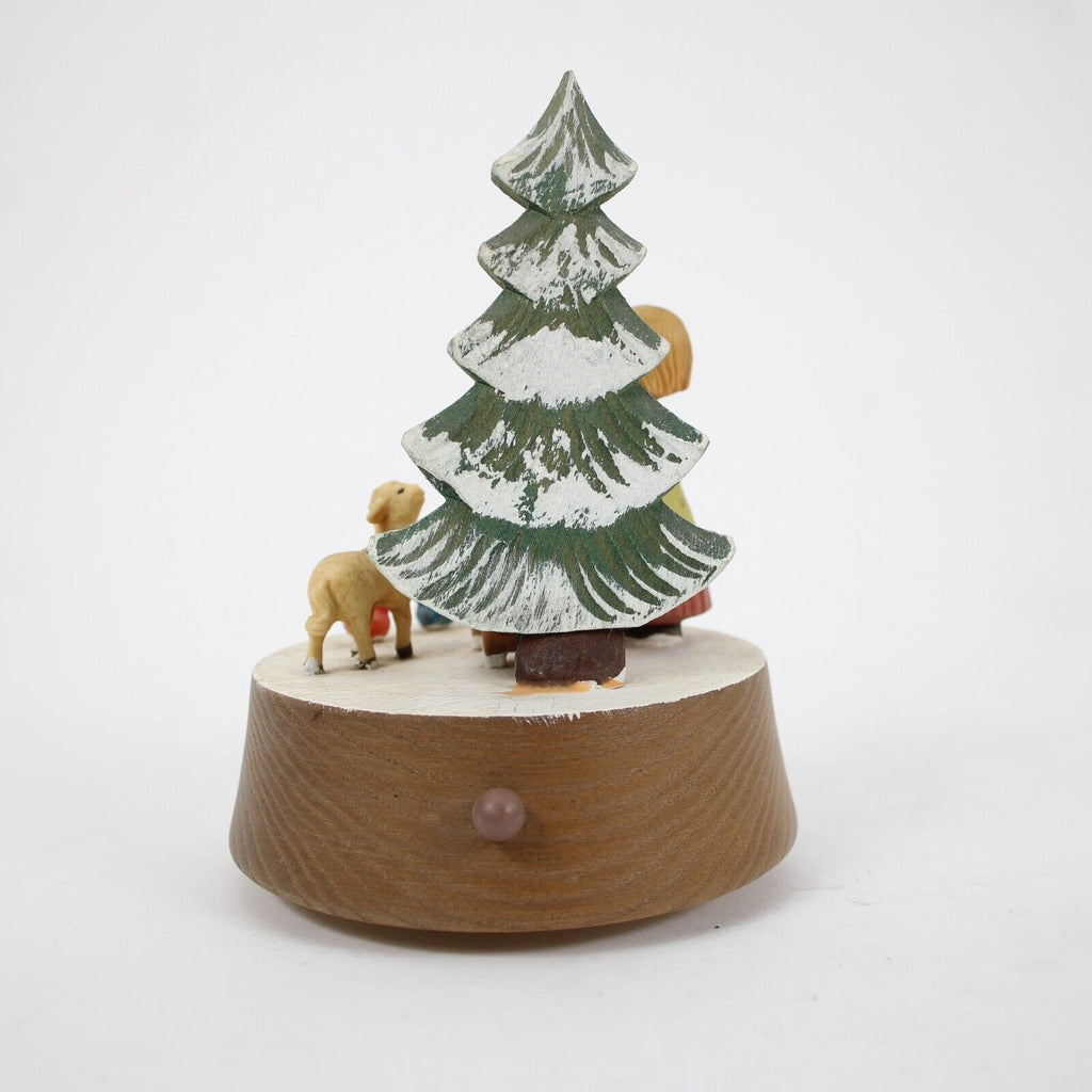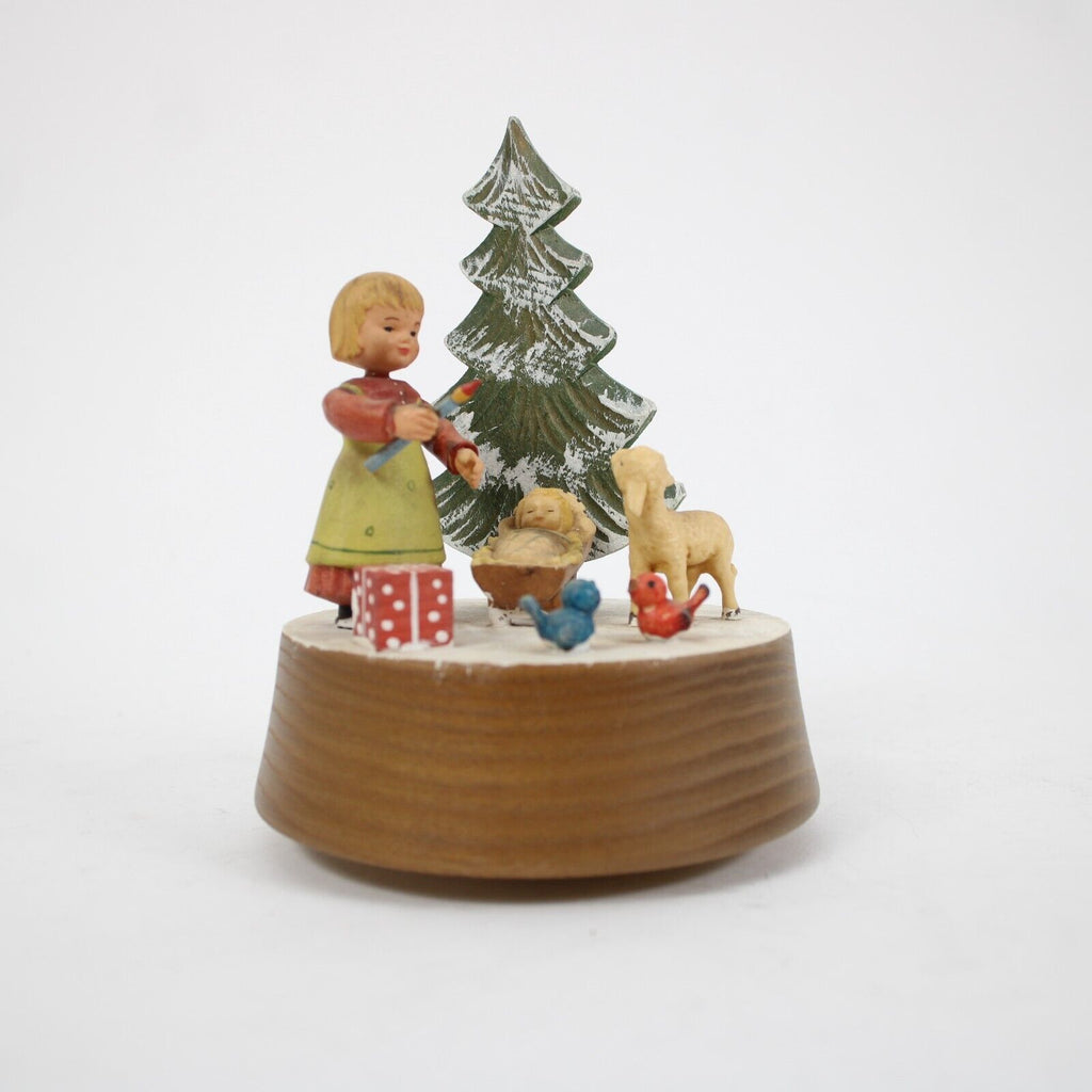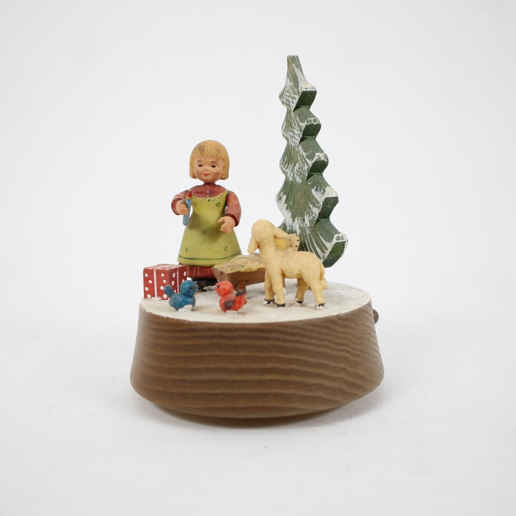 Anri Silent Night Wood Multi Color Xmas Tree With Girl 5" Music Box Figurine