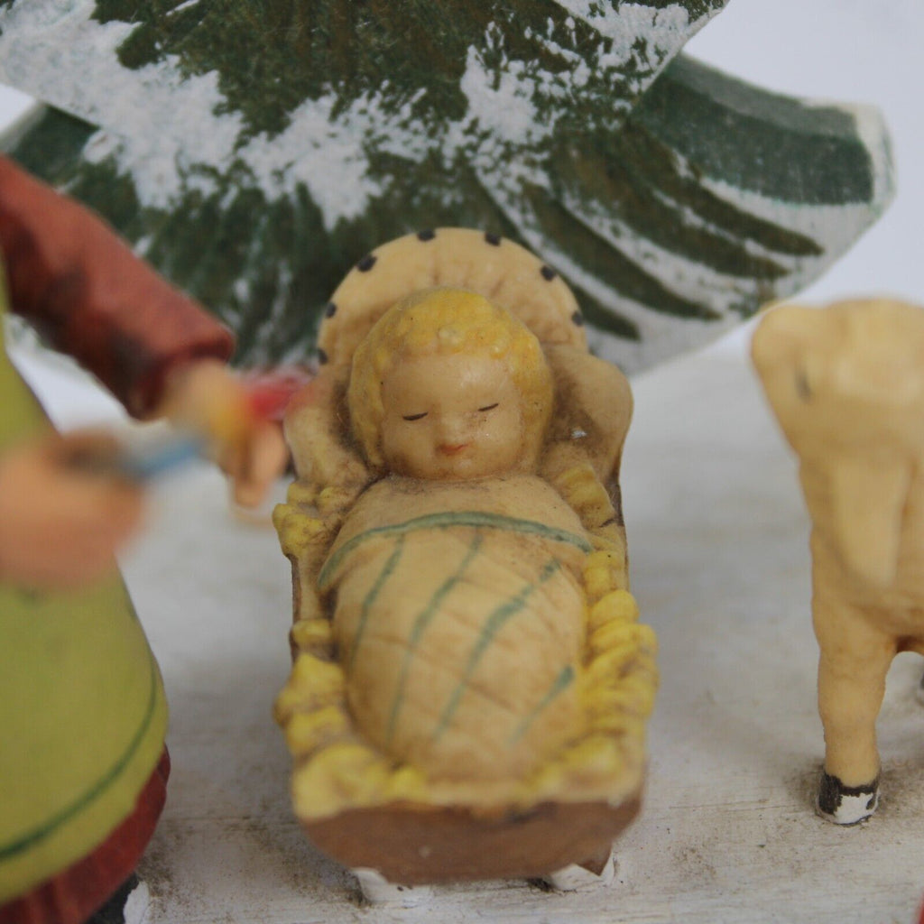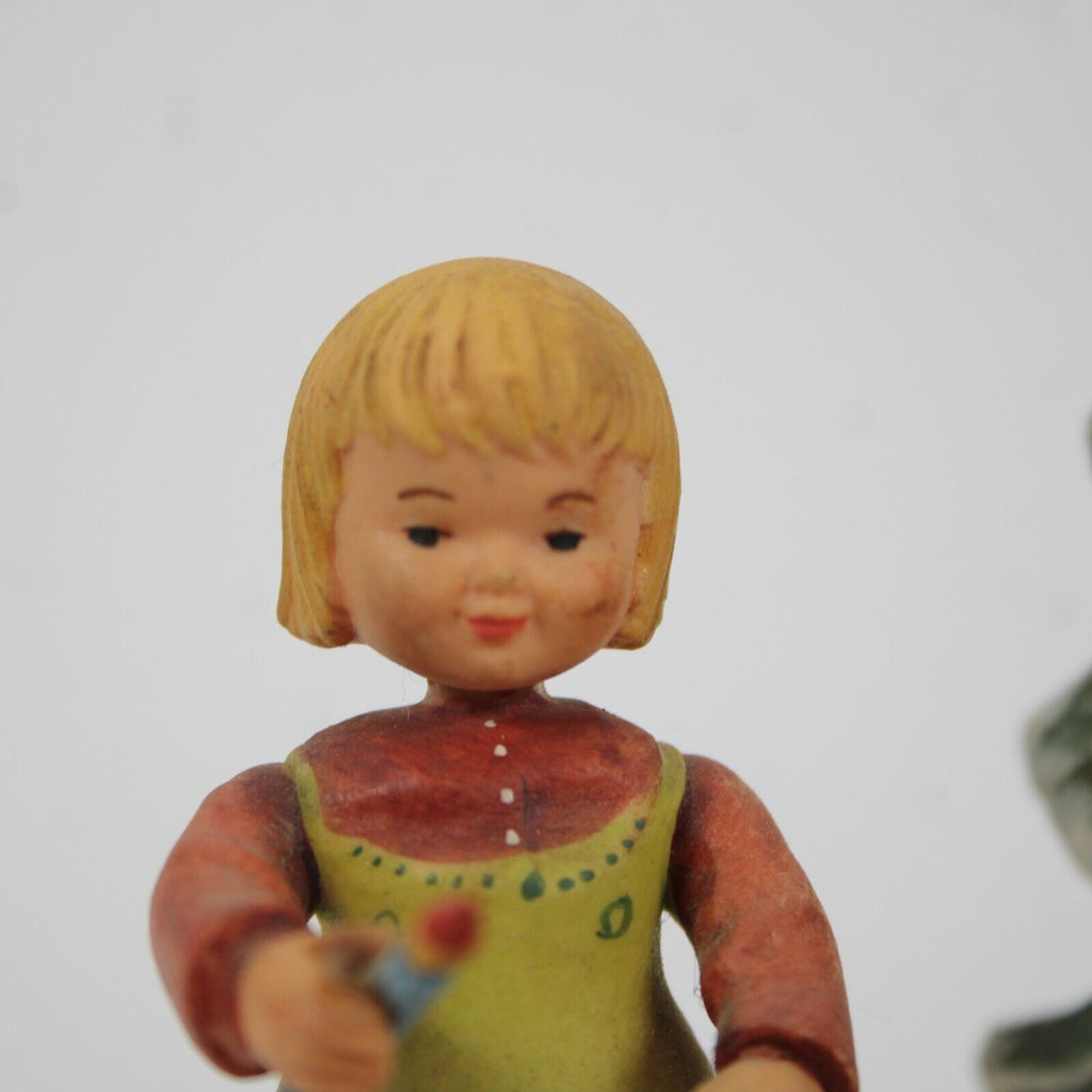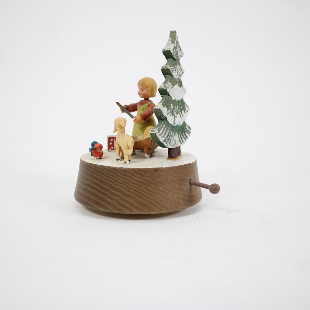 Anri Silent Night Wood Multi Color Xmas Tree With Girl 5" Music Box Figurine