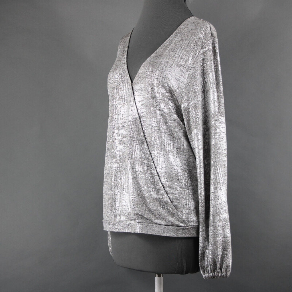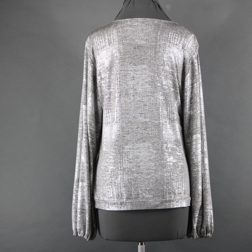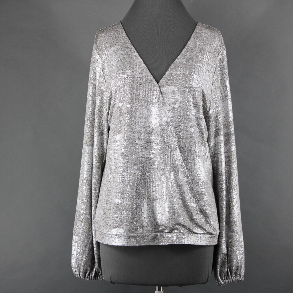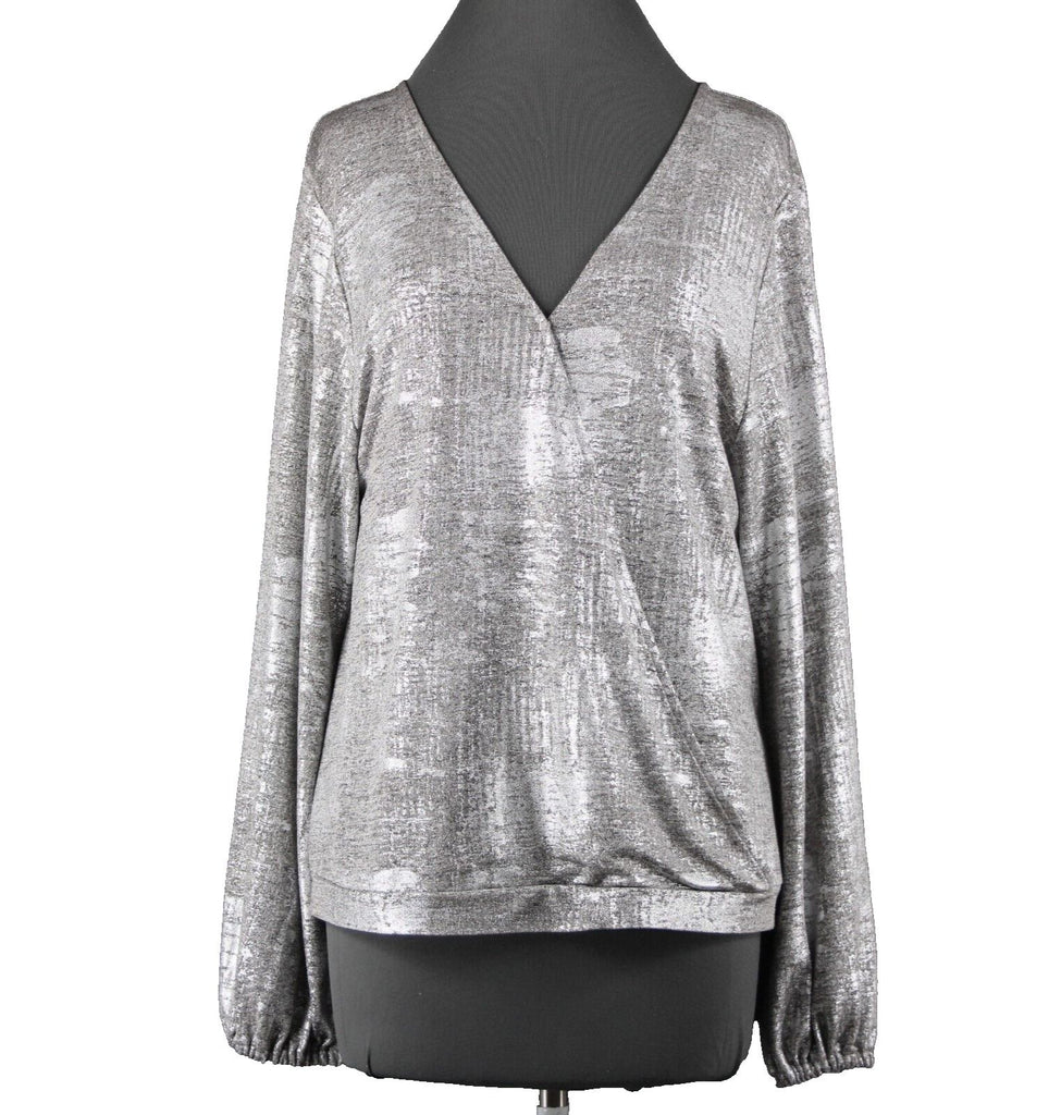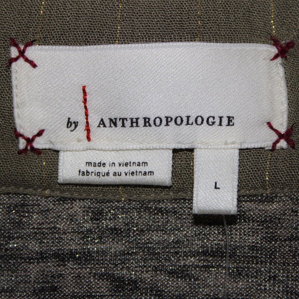 Anthropologie NEW $78 Sz L Silver Tan Metallic V Neck Polester Elastane Top