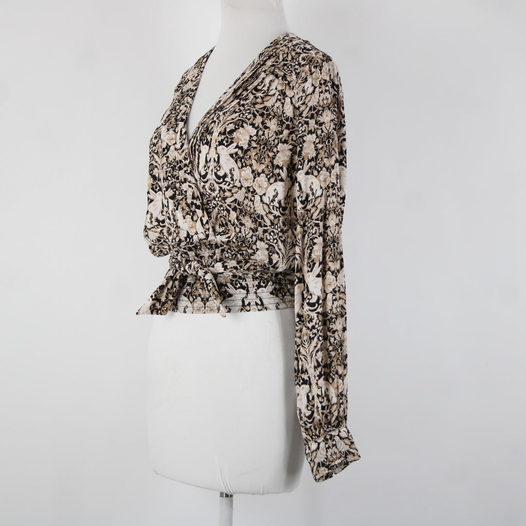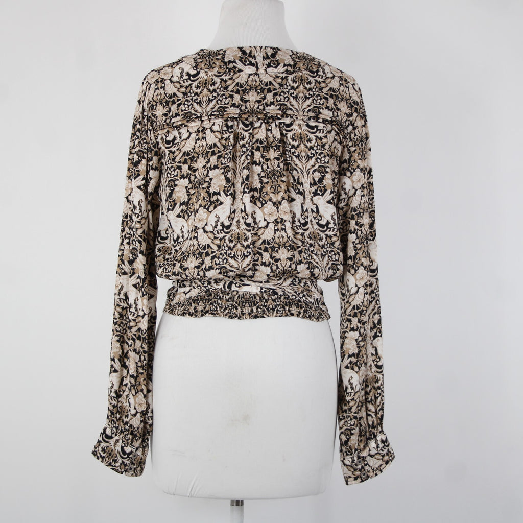 Anthropologie NEW $80 Sz S Brown Black White V Neck Bunnies Birds 100% Poly Top