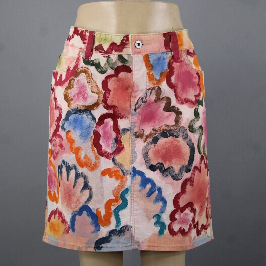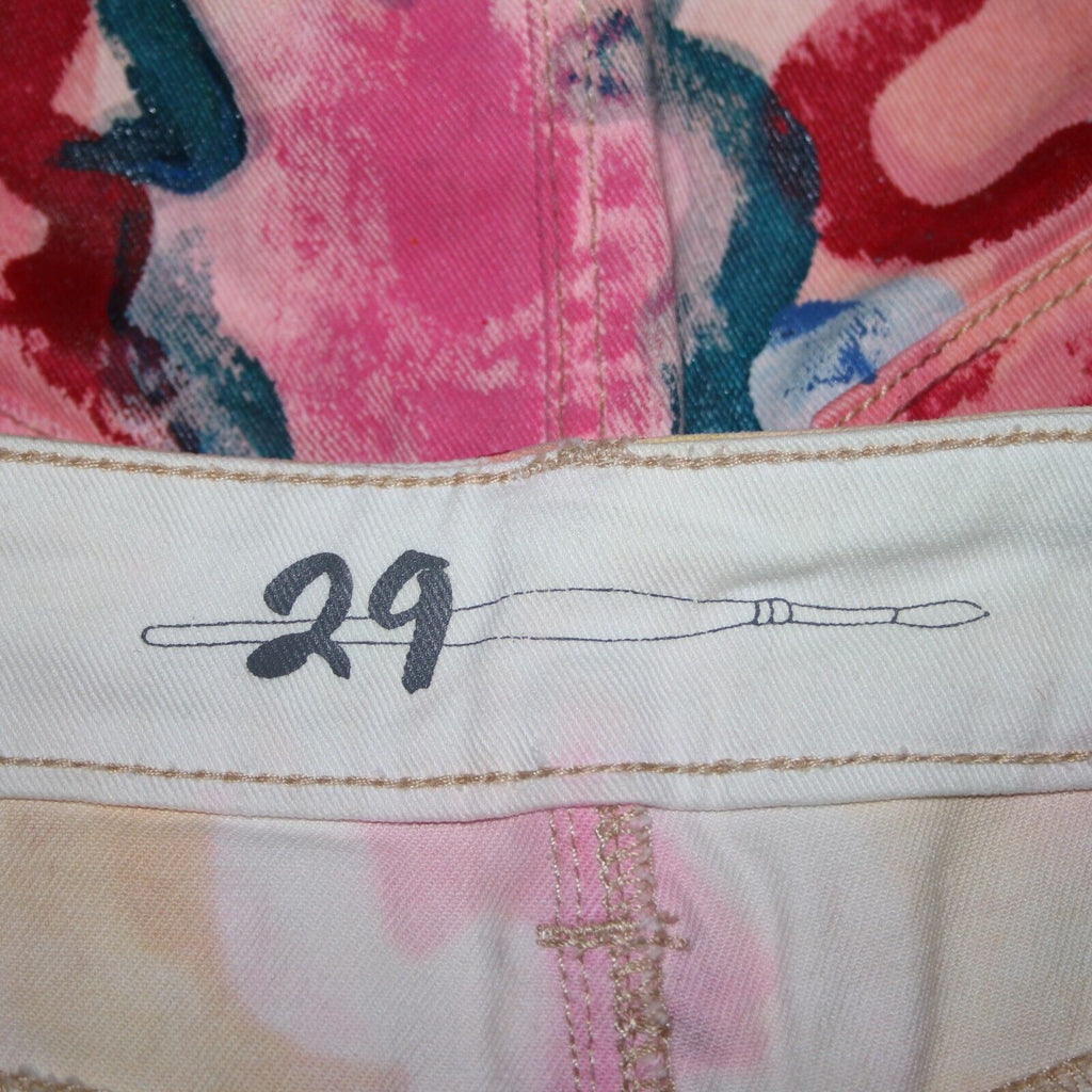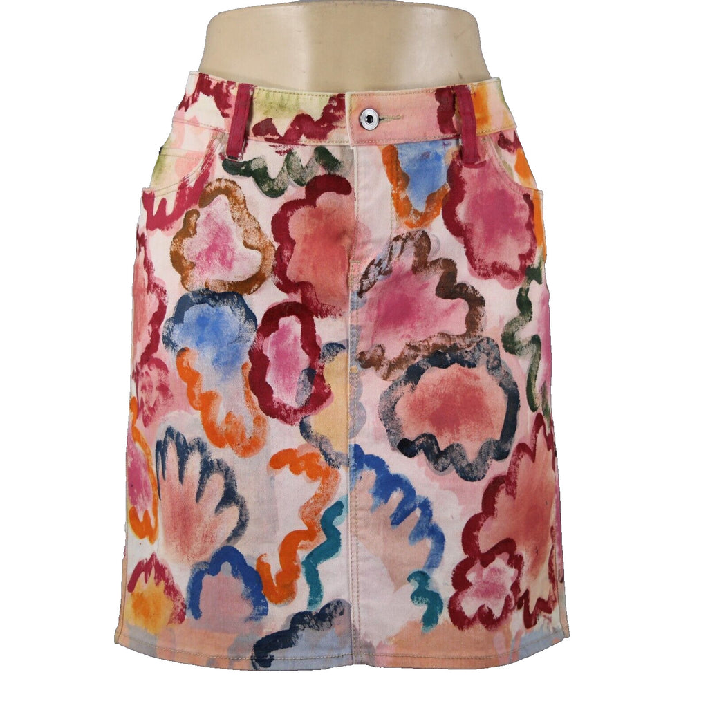 Anthropologie Sz 29 Pink Multi Color Hand Painted Denim Cotton Spandex Skirt