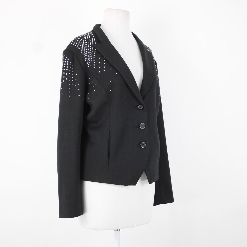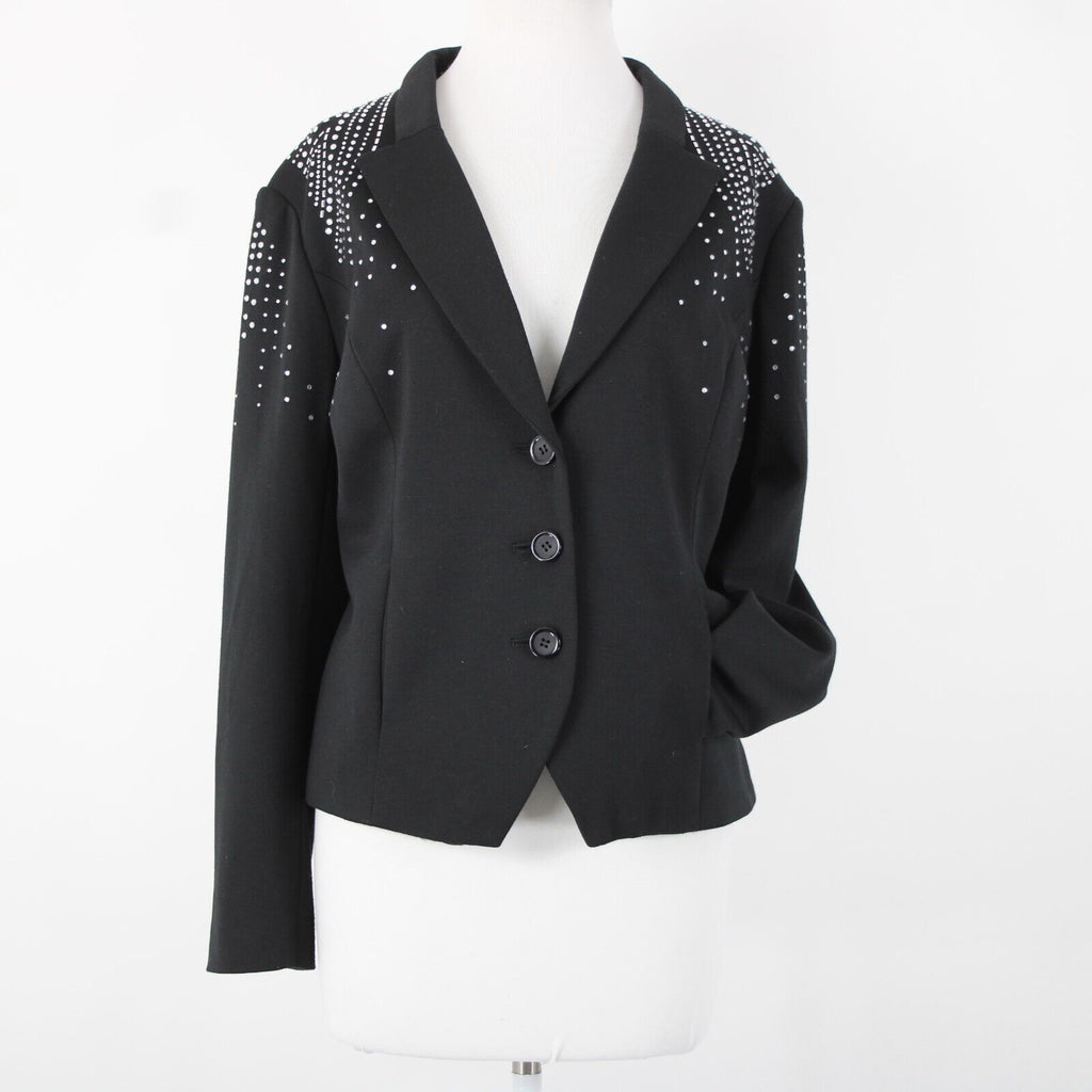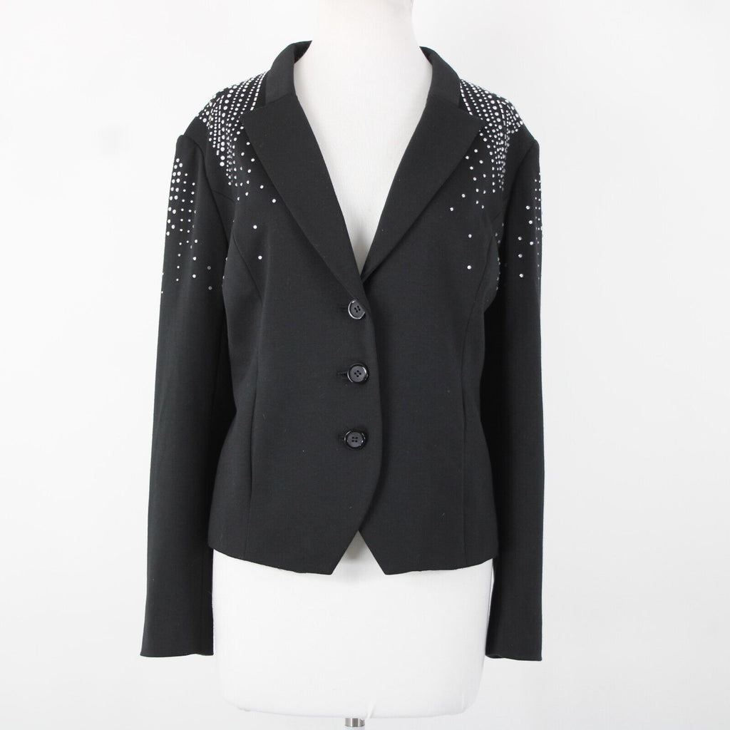 Antthony Sz L Black Silver Rhinestones Collared Lined Polyester Rayon Jacket