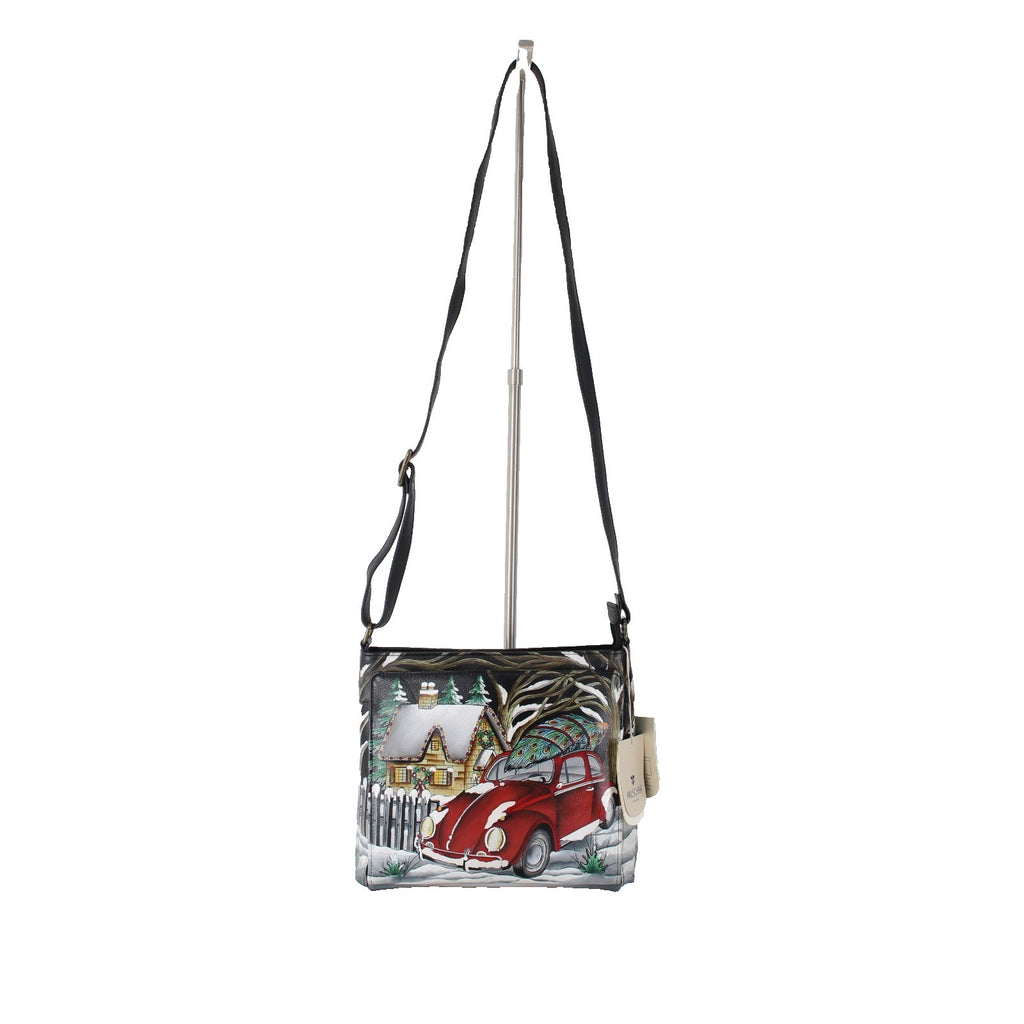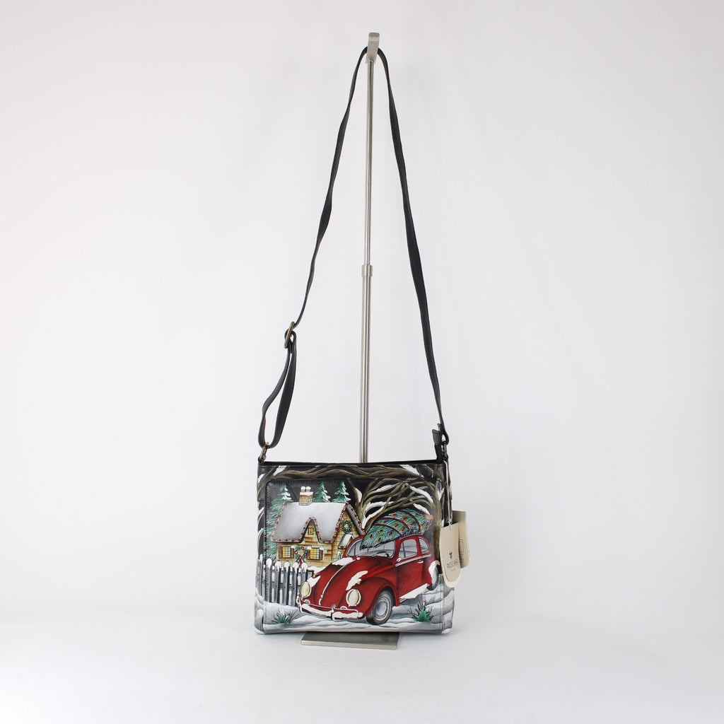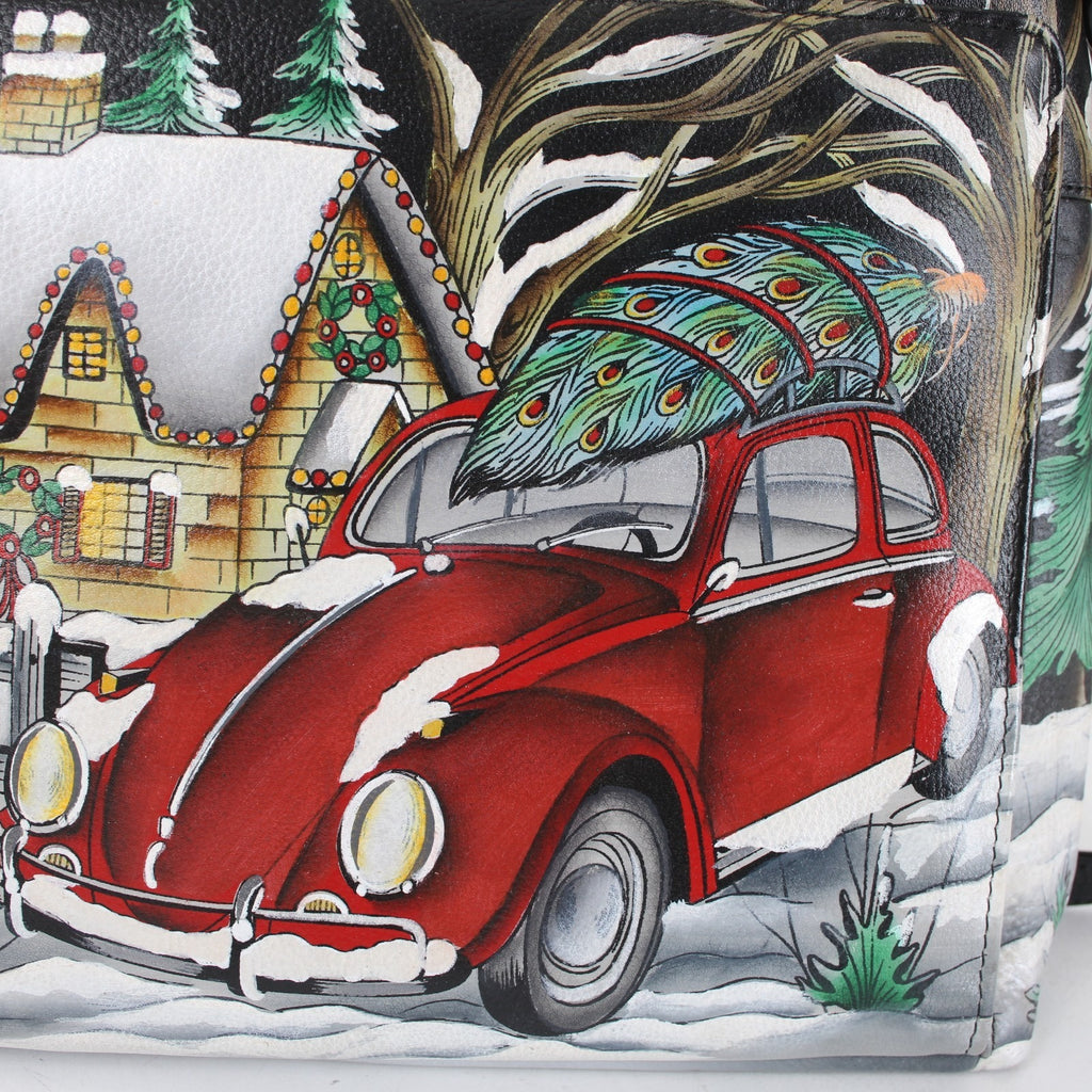 Anuschka Purse NEW 11 x 9x3 Multi Color Red Bug Holiday Painted Leather Purse