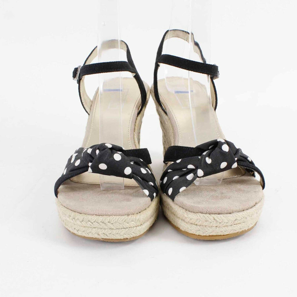 Arizona Sz 6.5M Black White Woven Polka Dots Fabric Upper 3.5" Wedge Heel