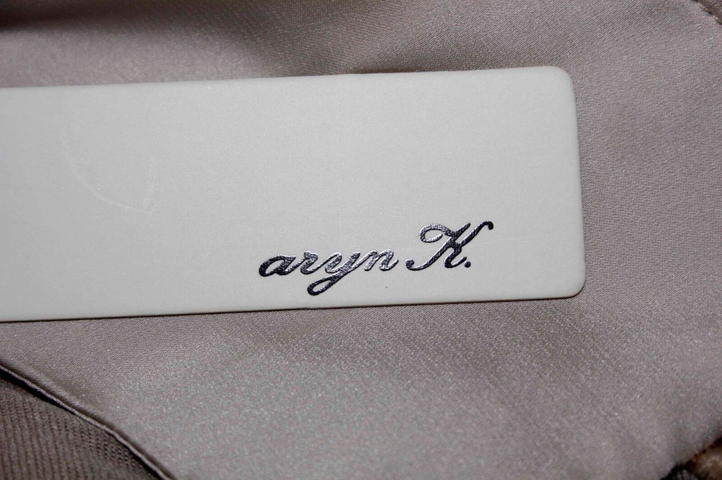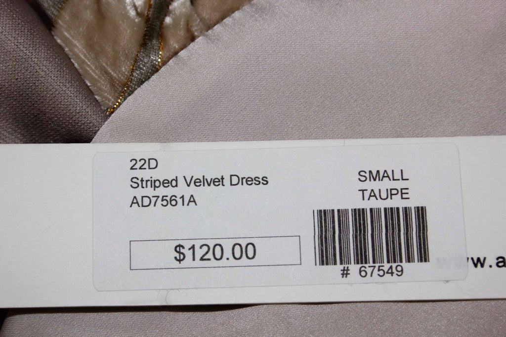 Aryn K NEW $120 Sz S Gold Taupe Velvet Stripe Satin Neck Back V Dress