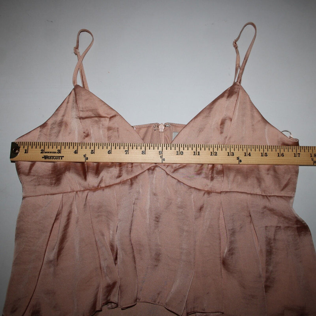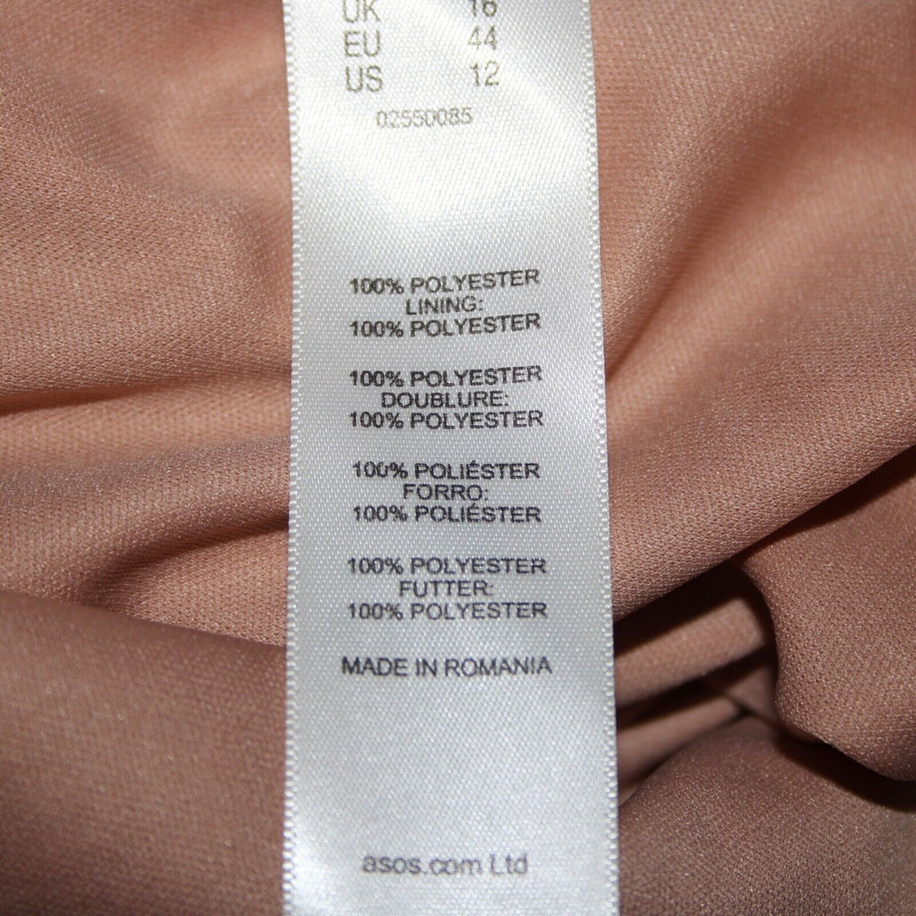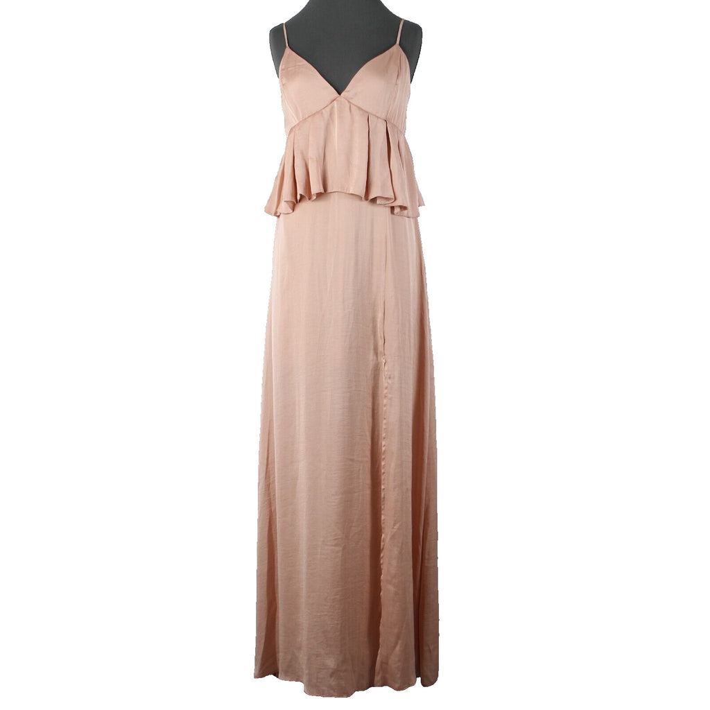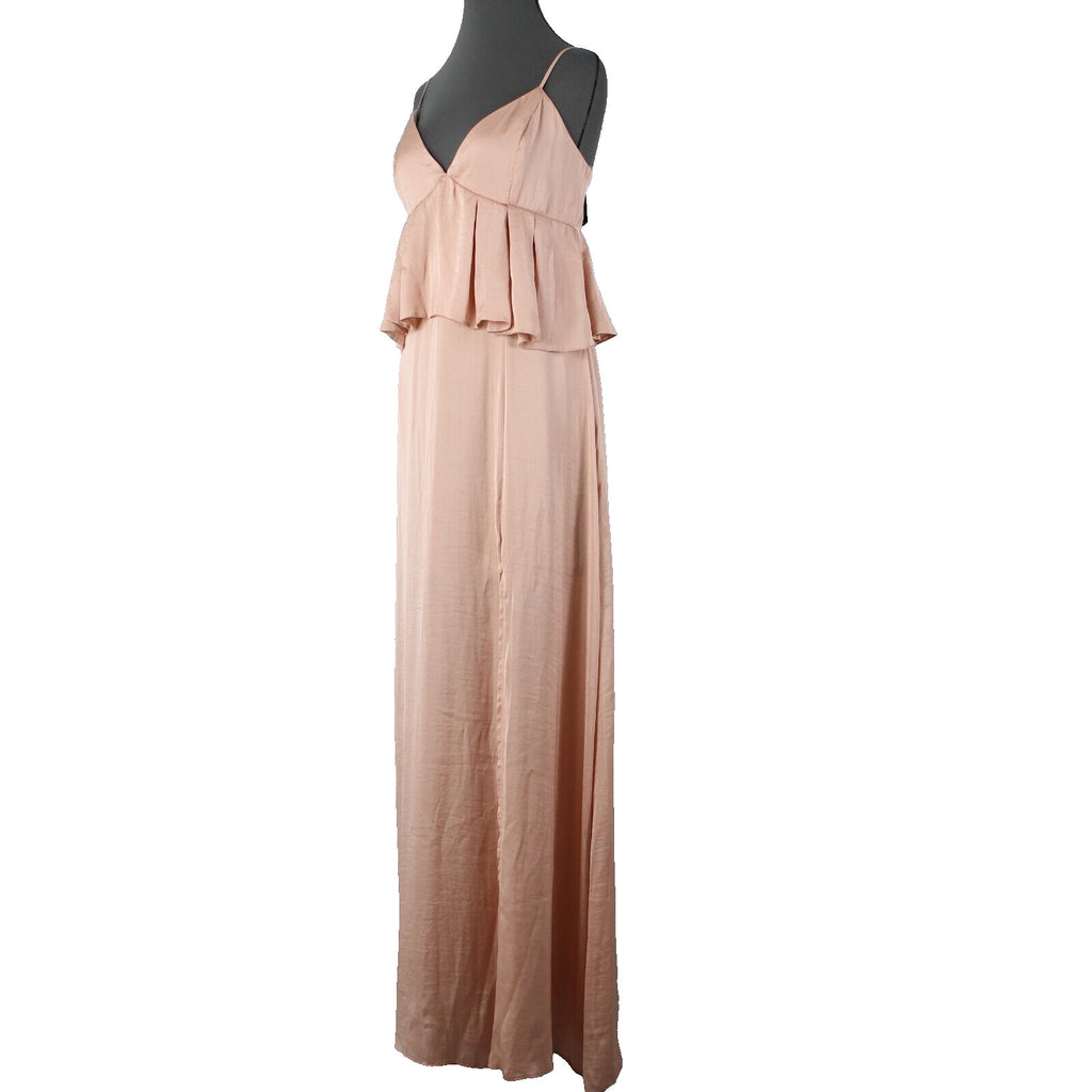 Asos NEW Sz 12 Peach Lined Side Split Ruffles V Neck 100% Polyester Dress