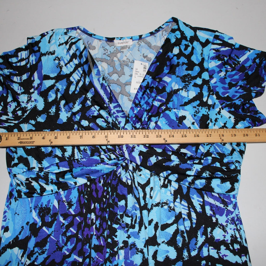 Avenue Dress NEW $70 Sz 22 Blue Black Purple Twisted Front Poly Spandex Dress