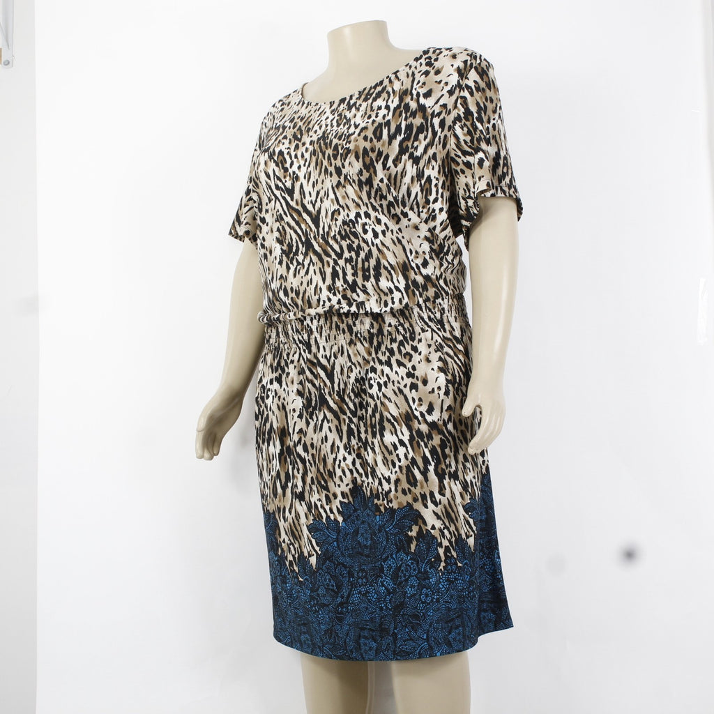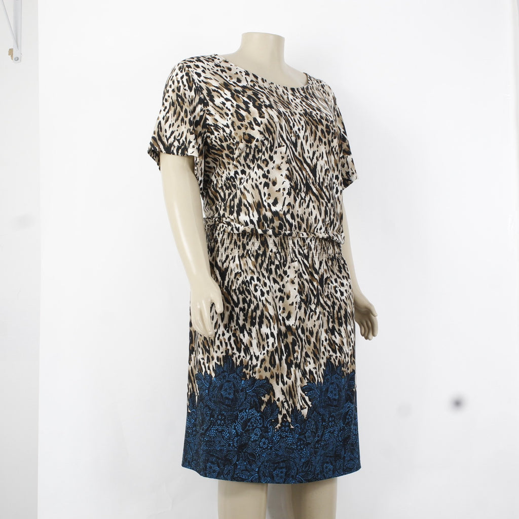 Avenue Dress Sz 30/32 Brown Blue Multi Color Animal Printed Unlined Poly Spandex