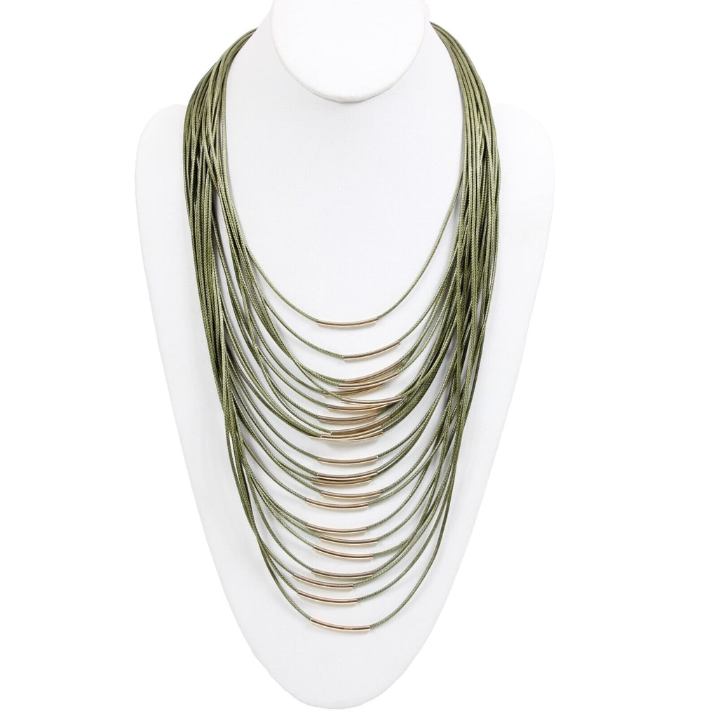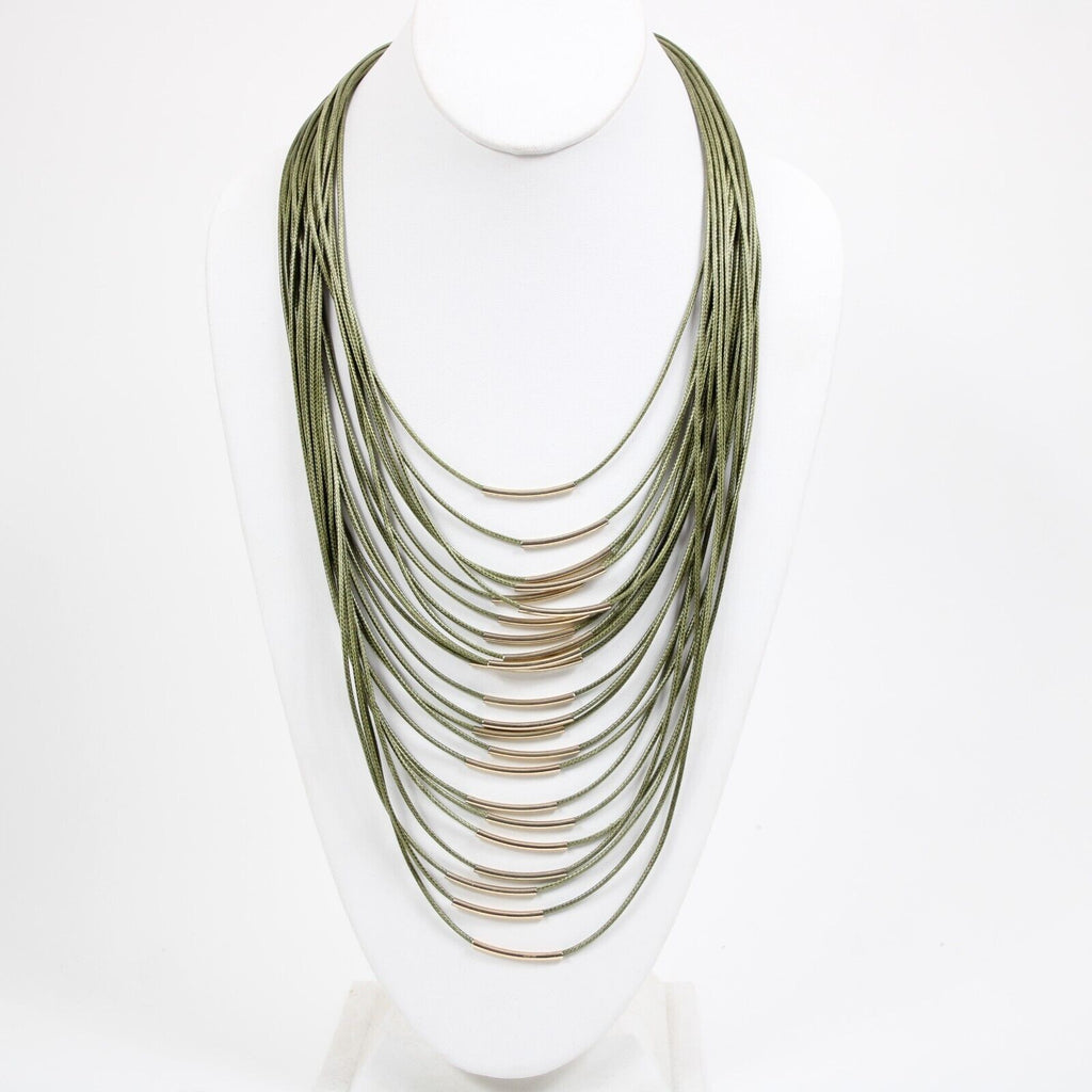 Avenue Green Goldtone Multi Strand Fabric 20" Ext. 3" Necklace