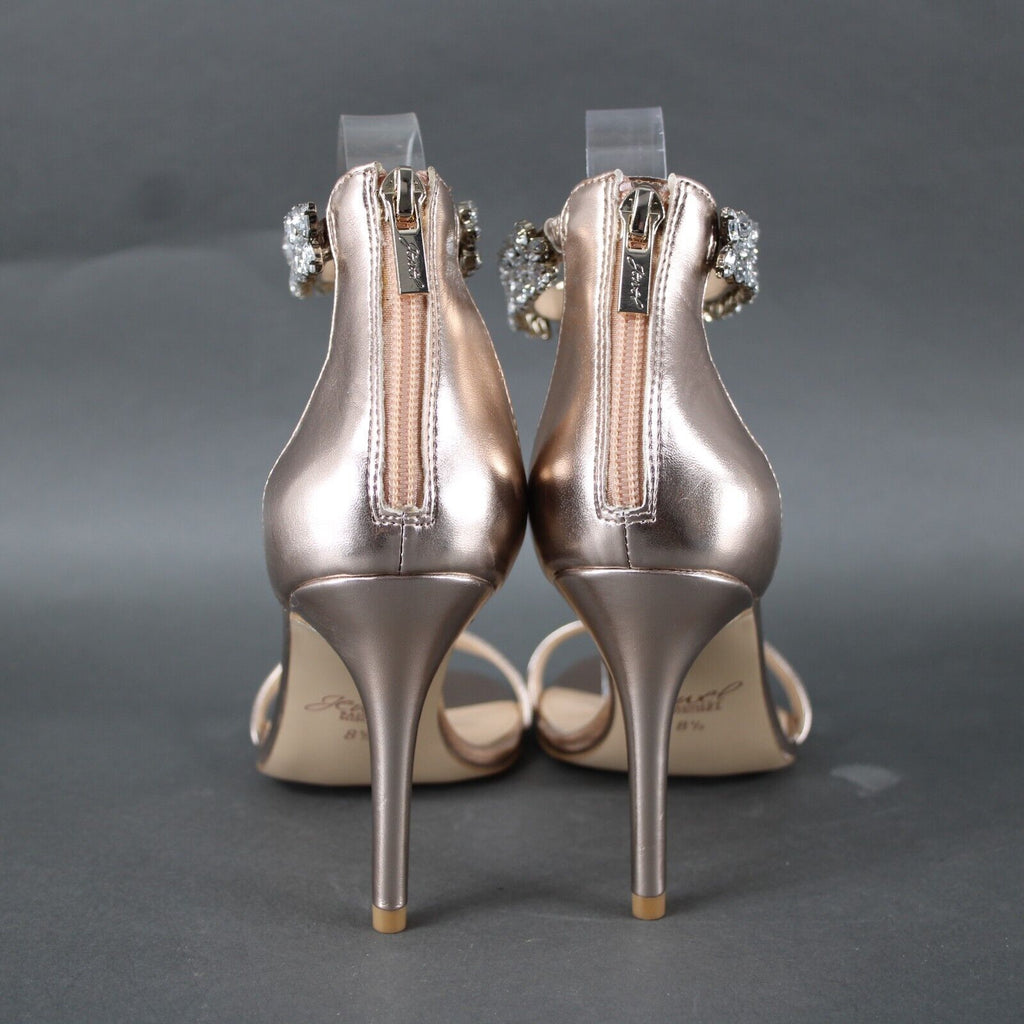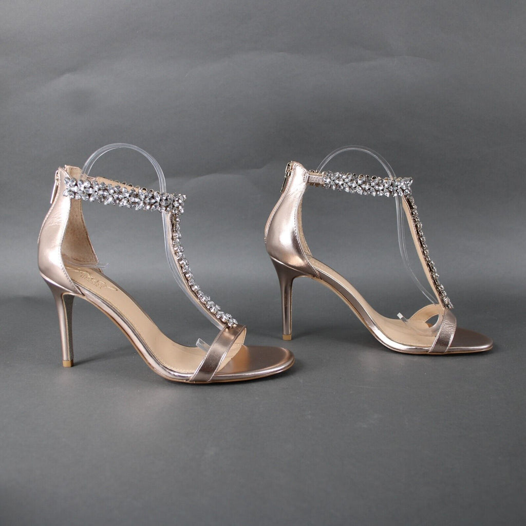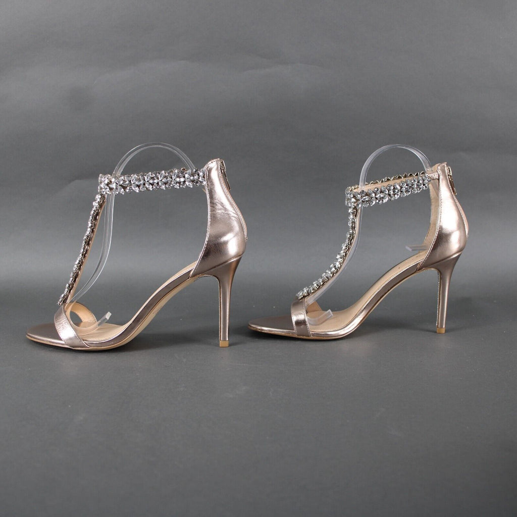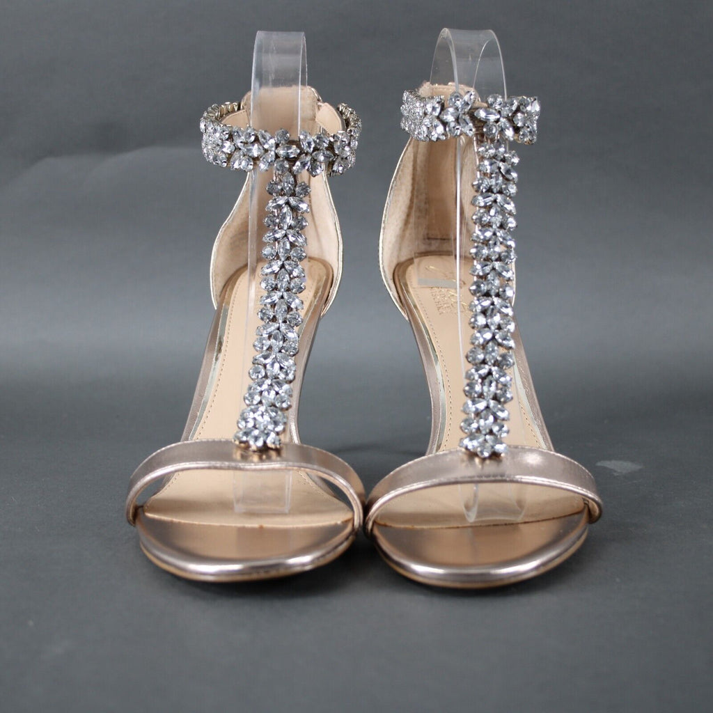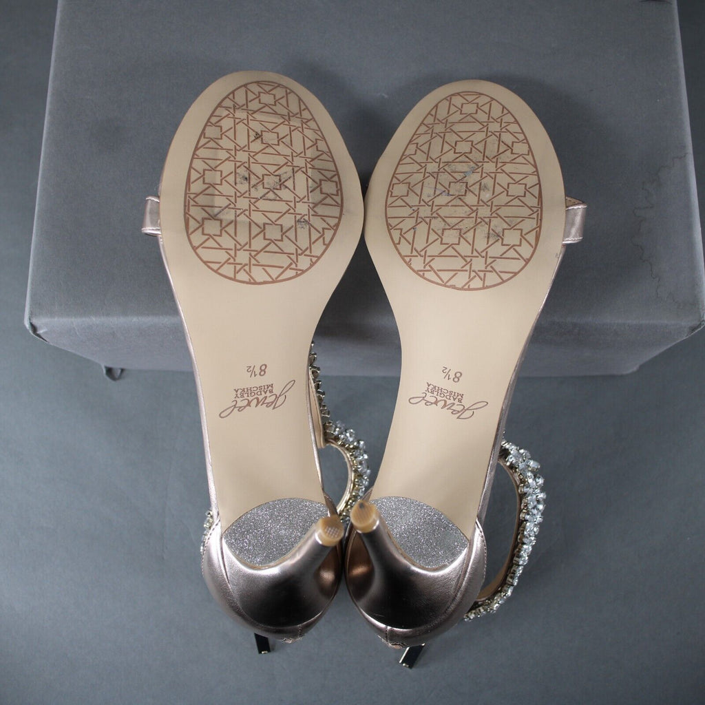 Badgley Mischka Jewel Sz 8.5 Rose Gold Silver Rhinestones Man Made 3.5" Heel