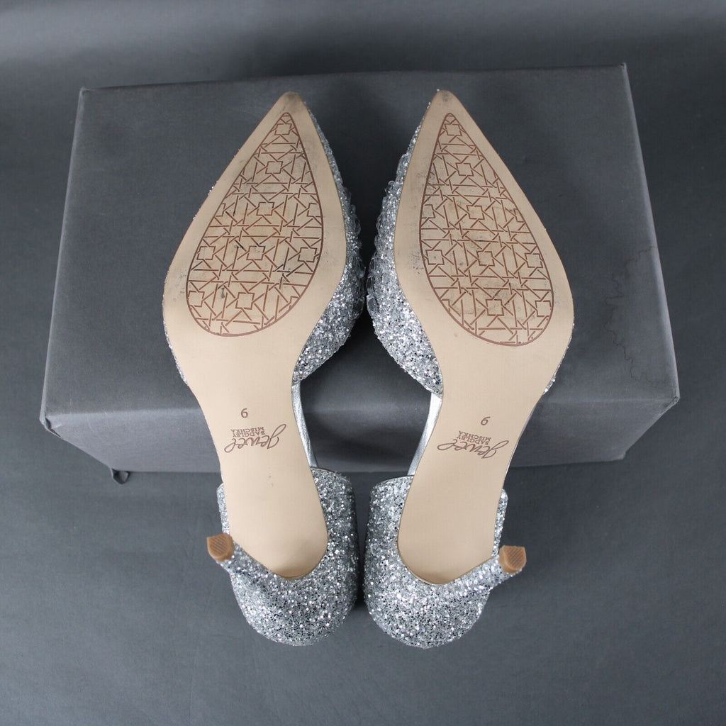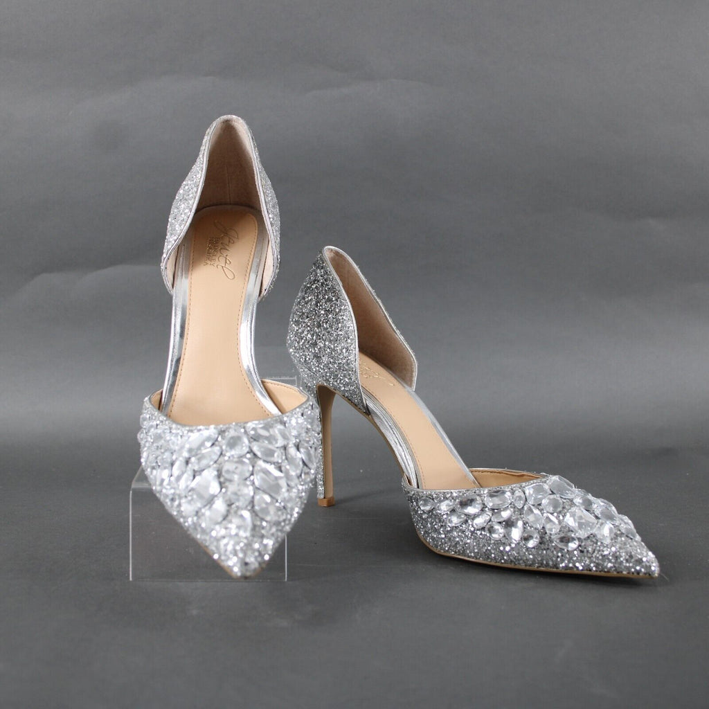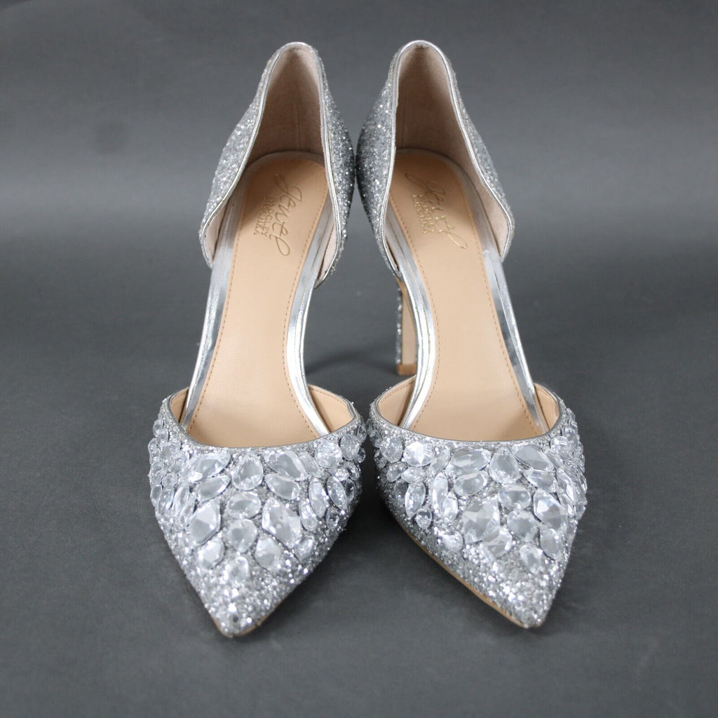 Badgley Mischka Jewel Sz 9 Silver Pave Rhinestone Glitter Man Made 4" Heel