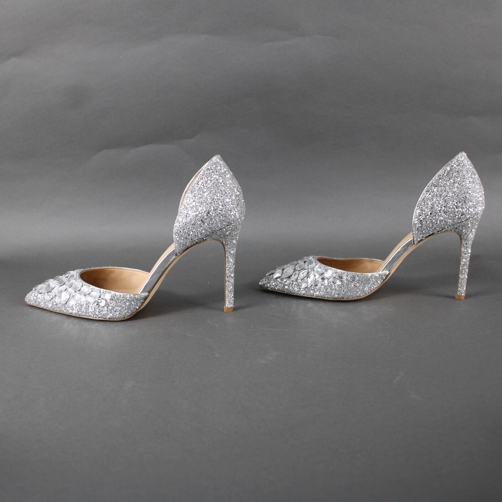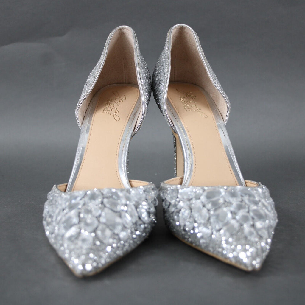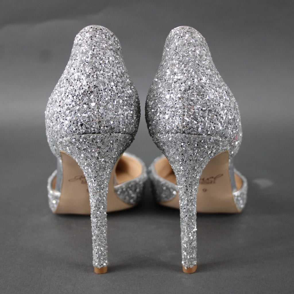 Badgley Mischka Jewel Sz 9 Silver Pave Rhinestone Glitter Man Made 4" Heel