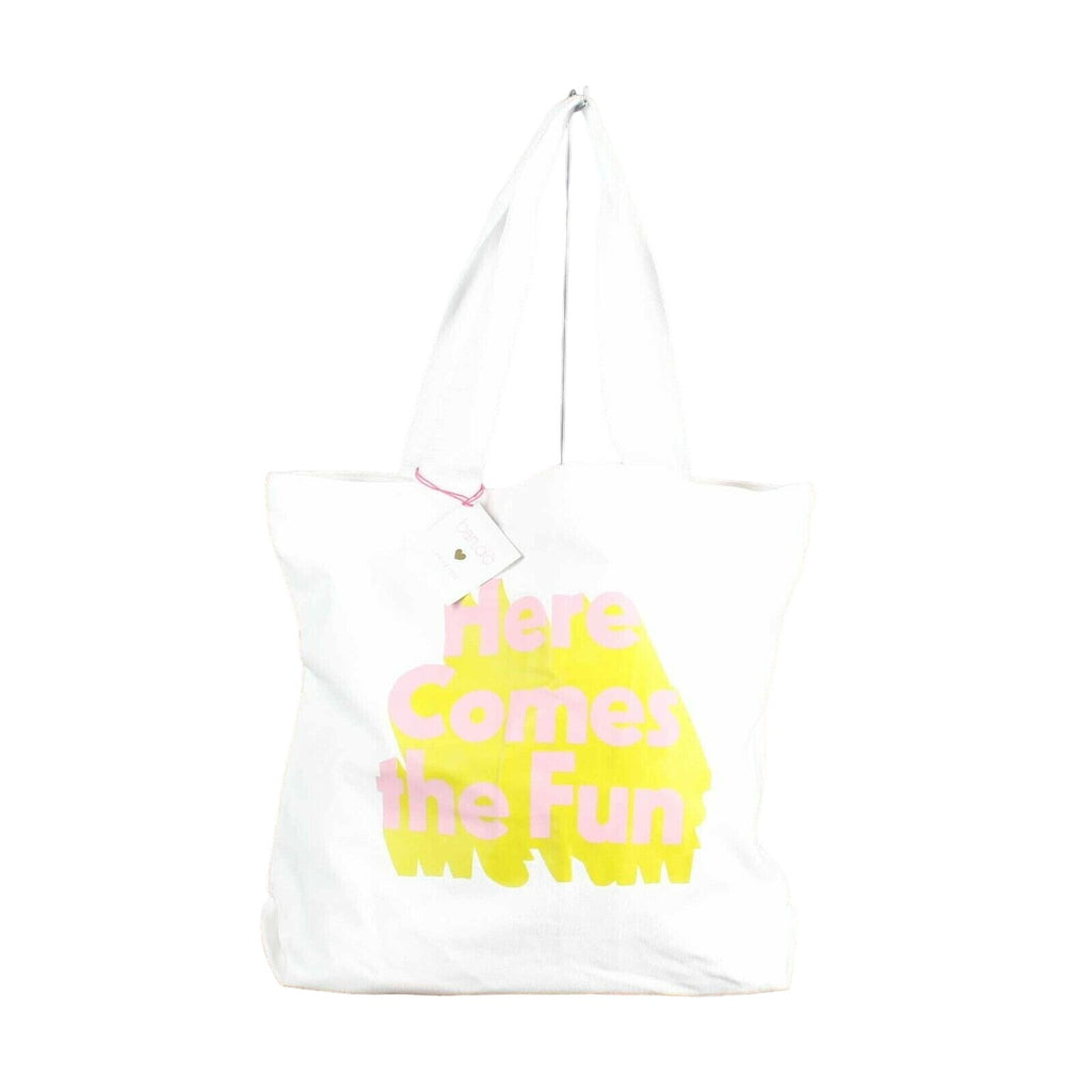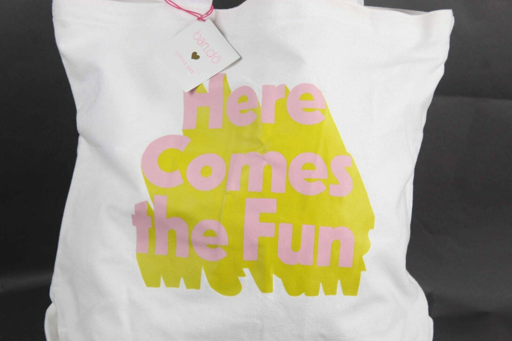 Ban.do NEW $25 16 x 18 x 4 White Multi Here Comes The Fun Canvas Tote