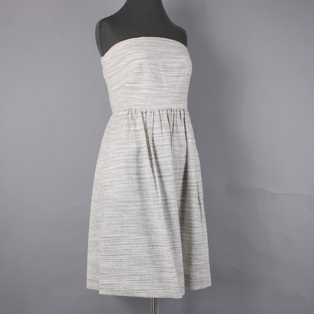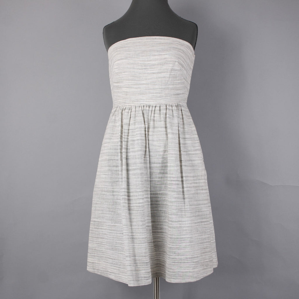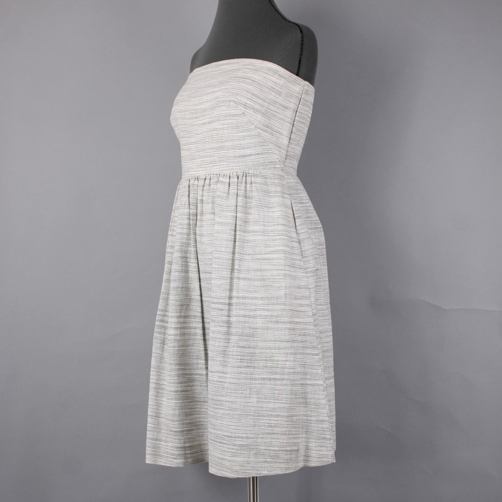 Banana Republic Dress NEW $70 Sz 6 White Grey Striped Strapless Linen Cotton