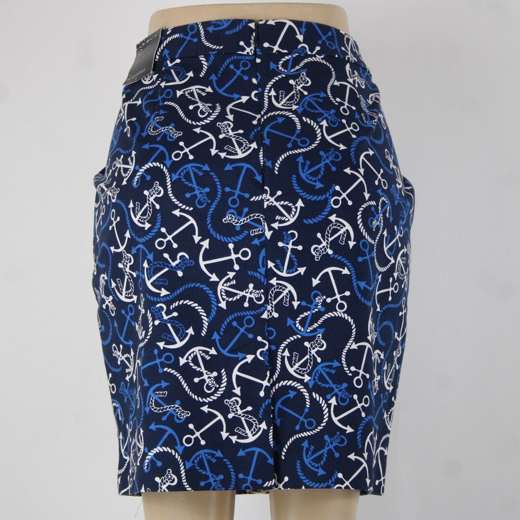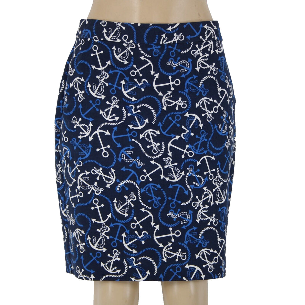 Banana Republic NEW Sz 10 Navy Blue White Anchor Hook Eye Cotton Spandex Skirt
