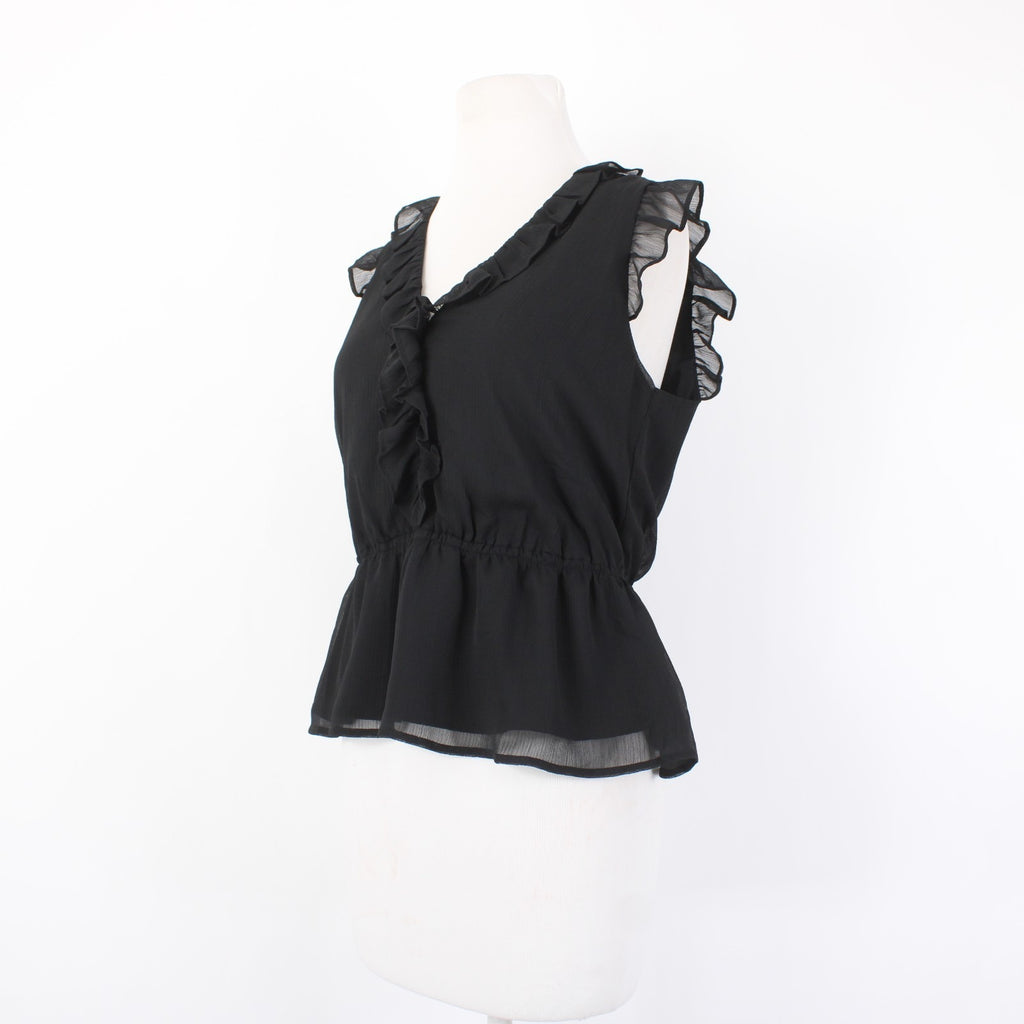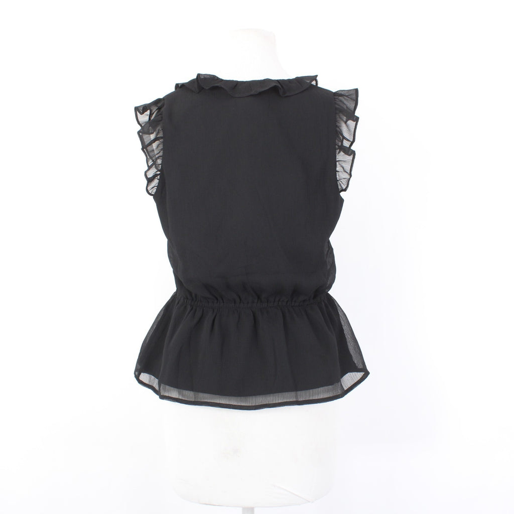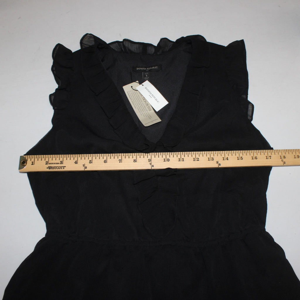 Banana Republic Top NEW $50 Sz S Petite Black Ruffled Lined Crop 100% Poly Top